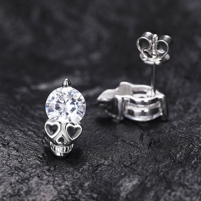 MOISSANITE HEART GHOST STUD EARRINGS IN STERLING SILVER