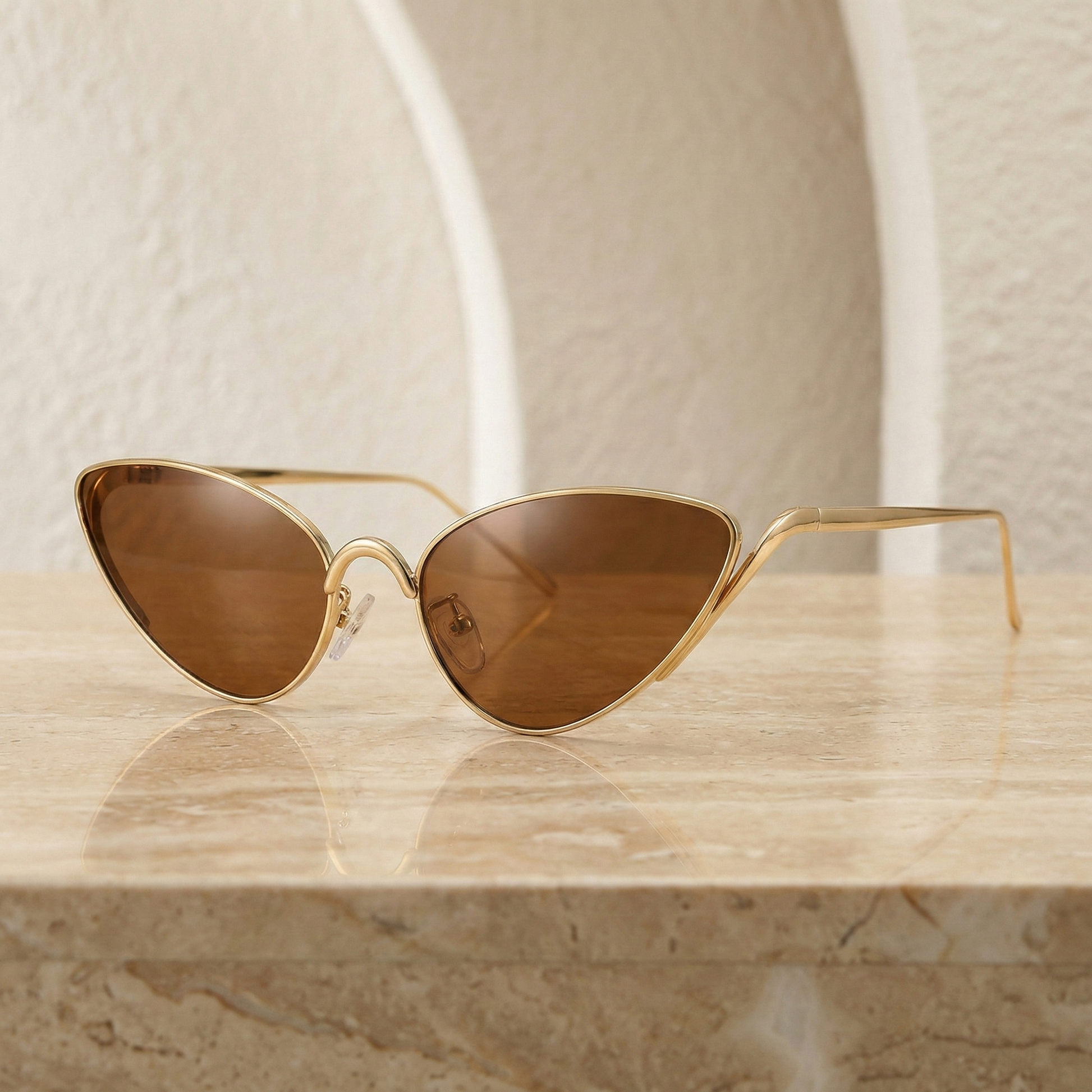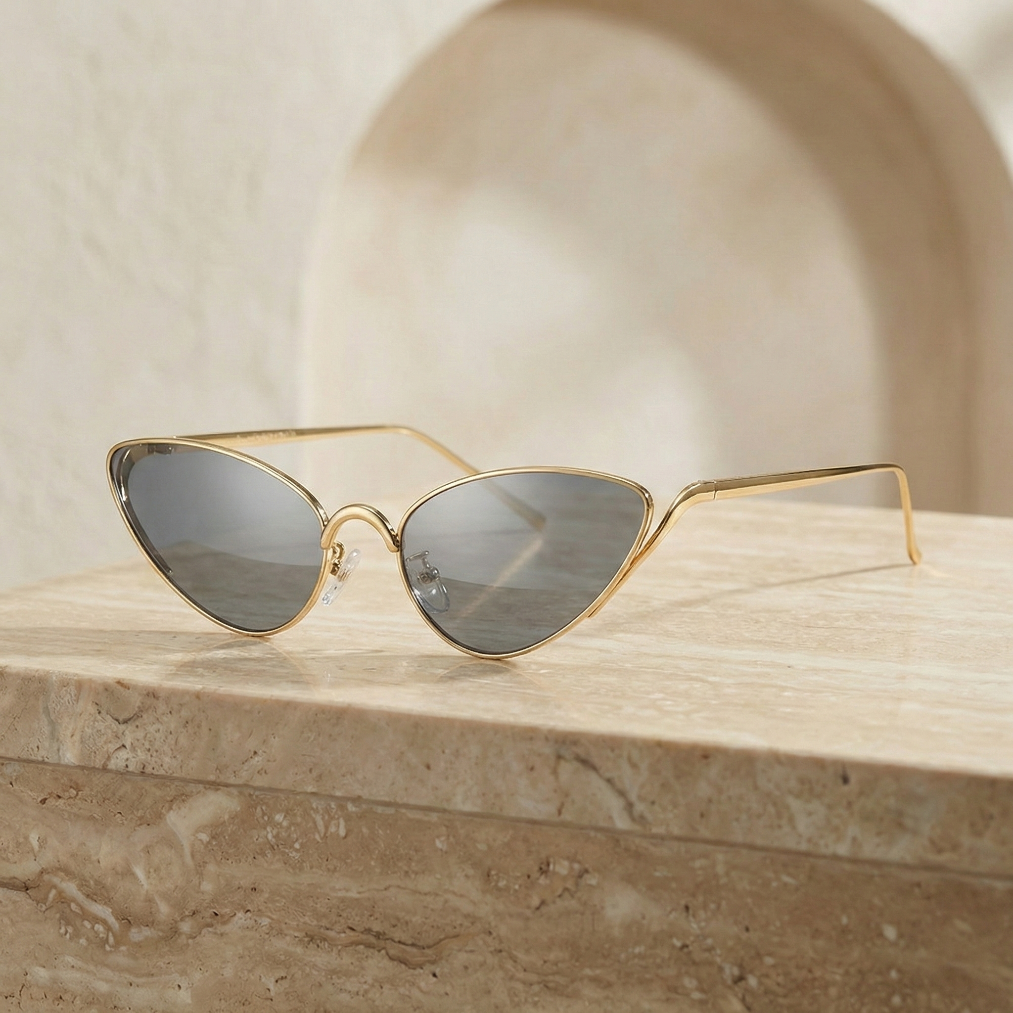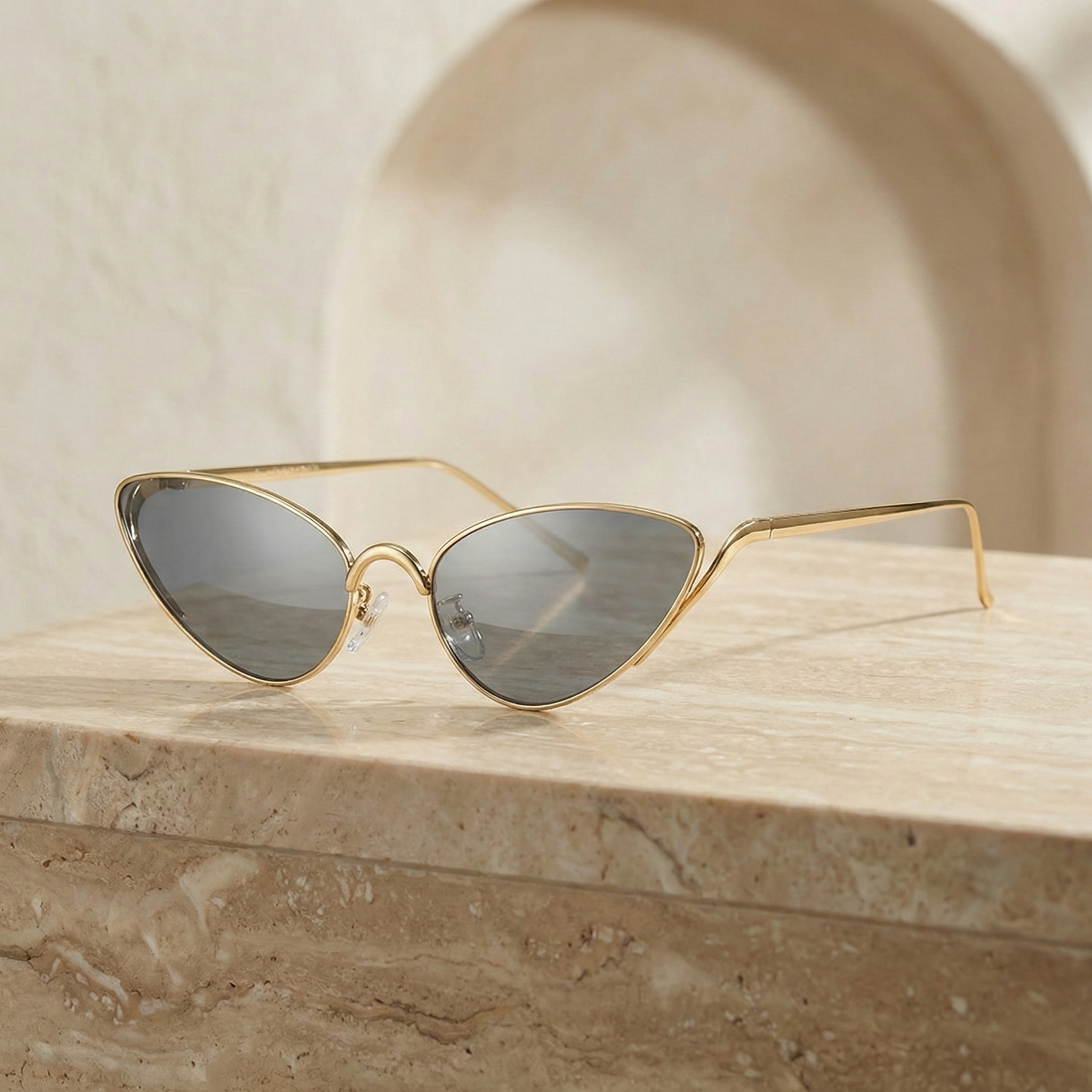 Valeria Cat-Eye Sunglasses are designed with a bold, sculpted cat-eye silhouette that exudes confidence and refined glamour. The sharp, upswept angles create a striking, feminine profile, while the slim metal frame keeps the design elegant and lightweight from every perspective.