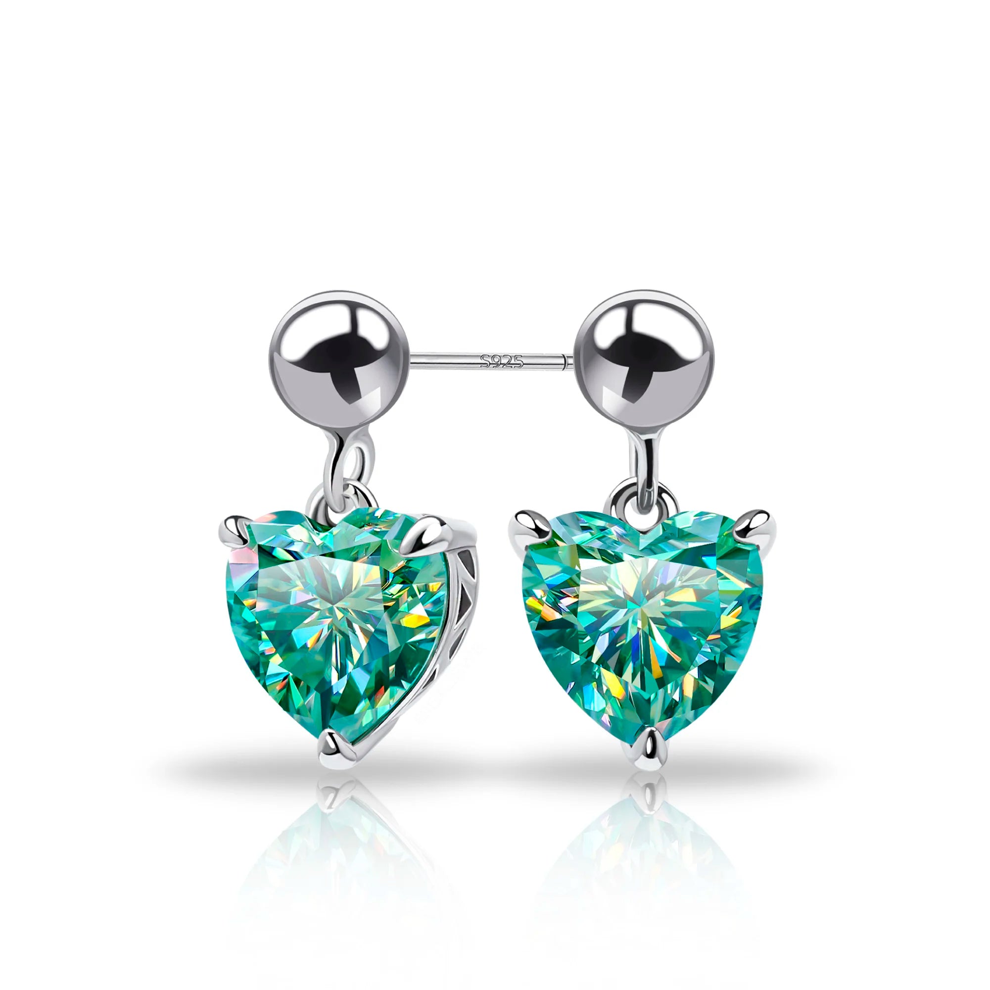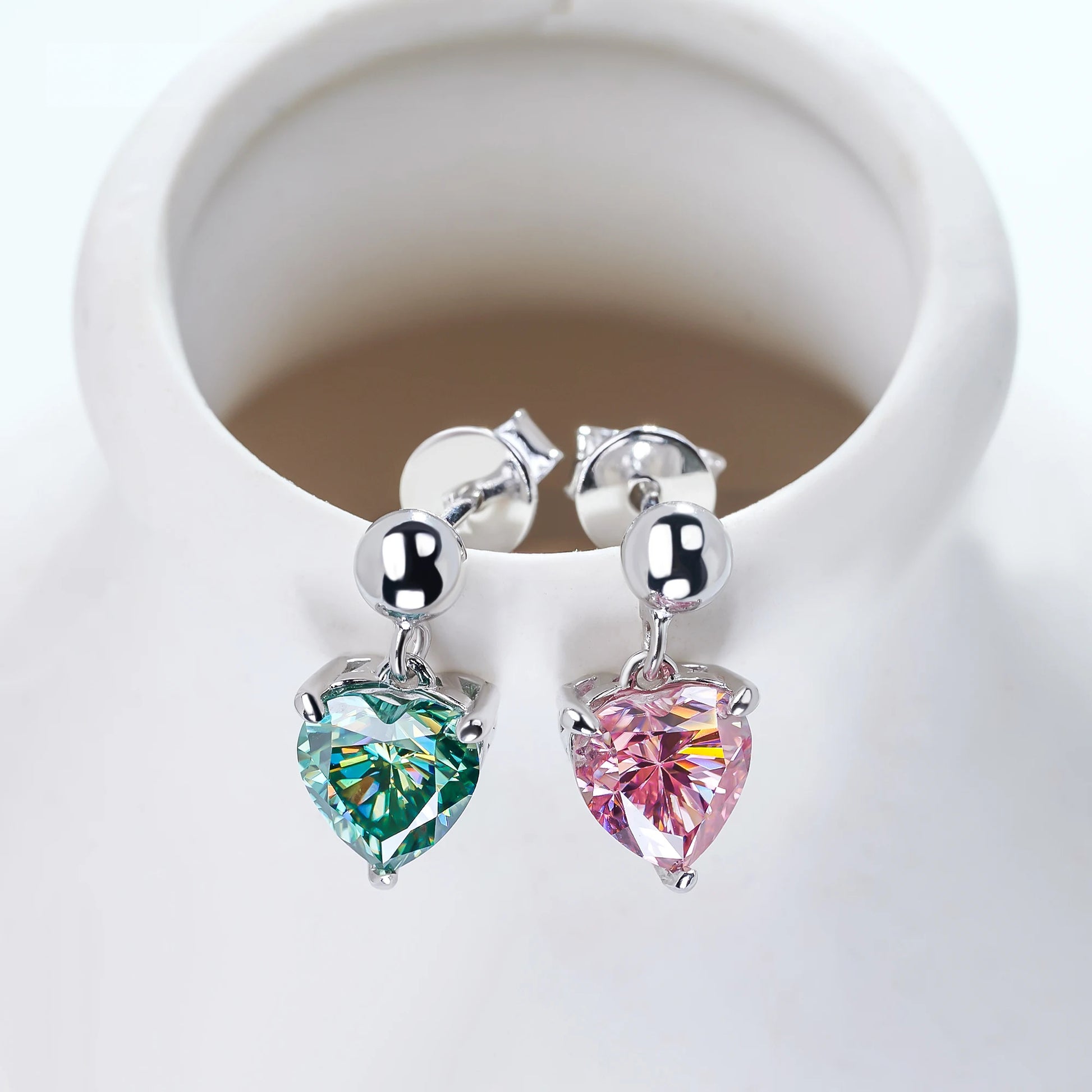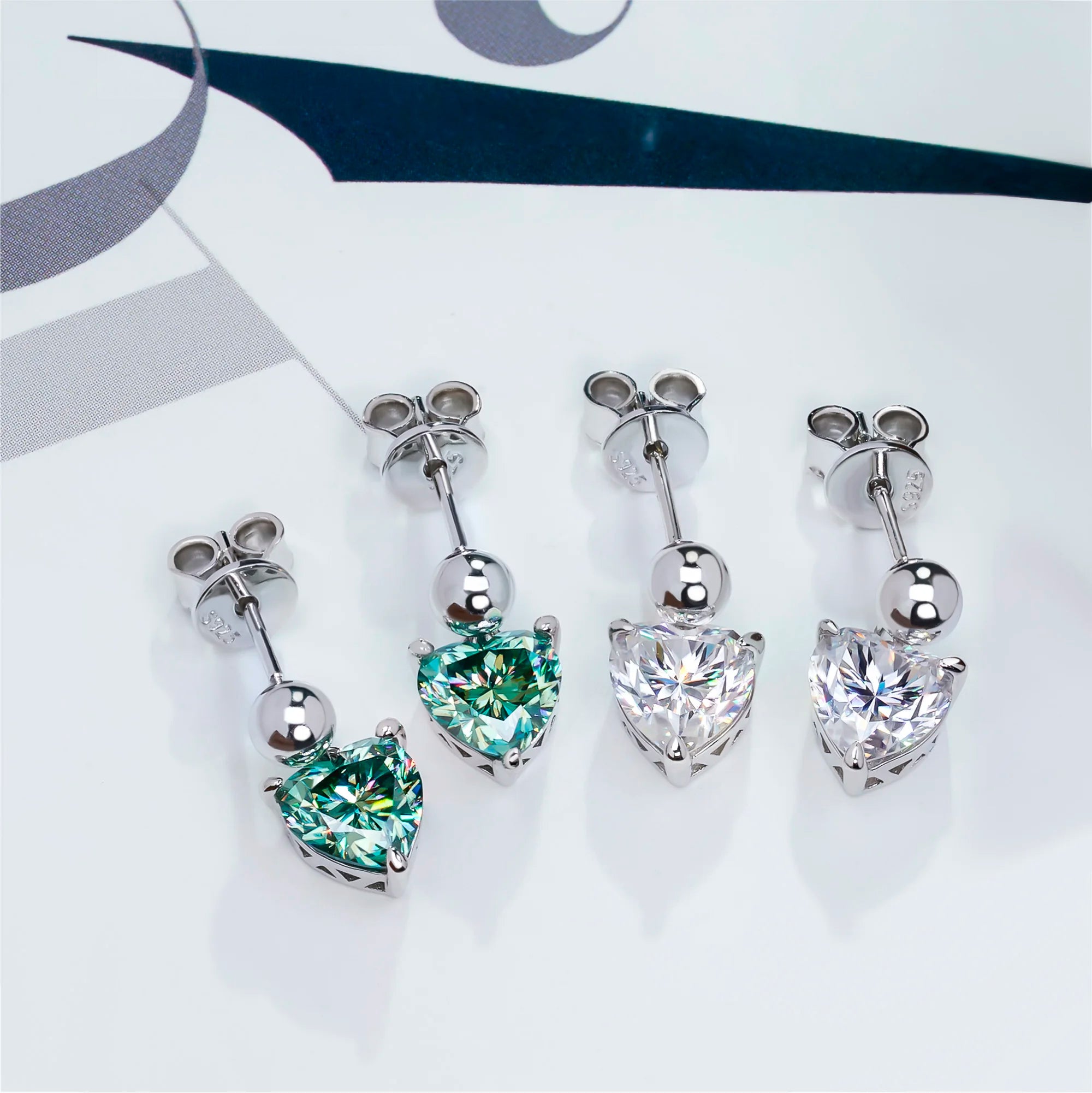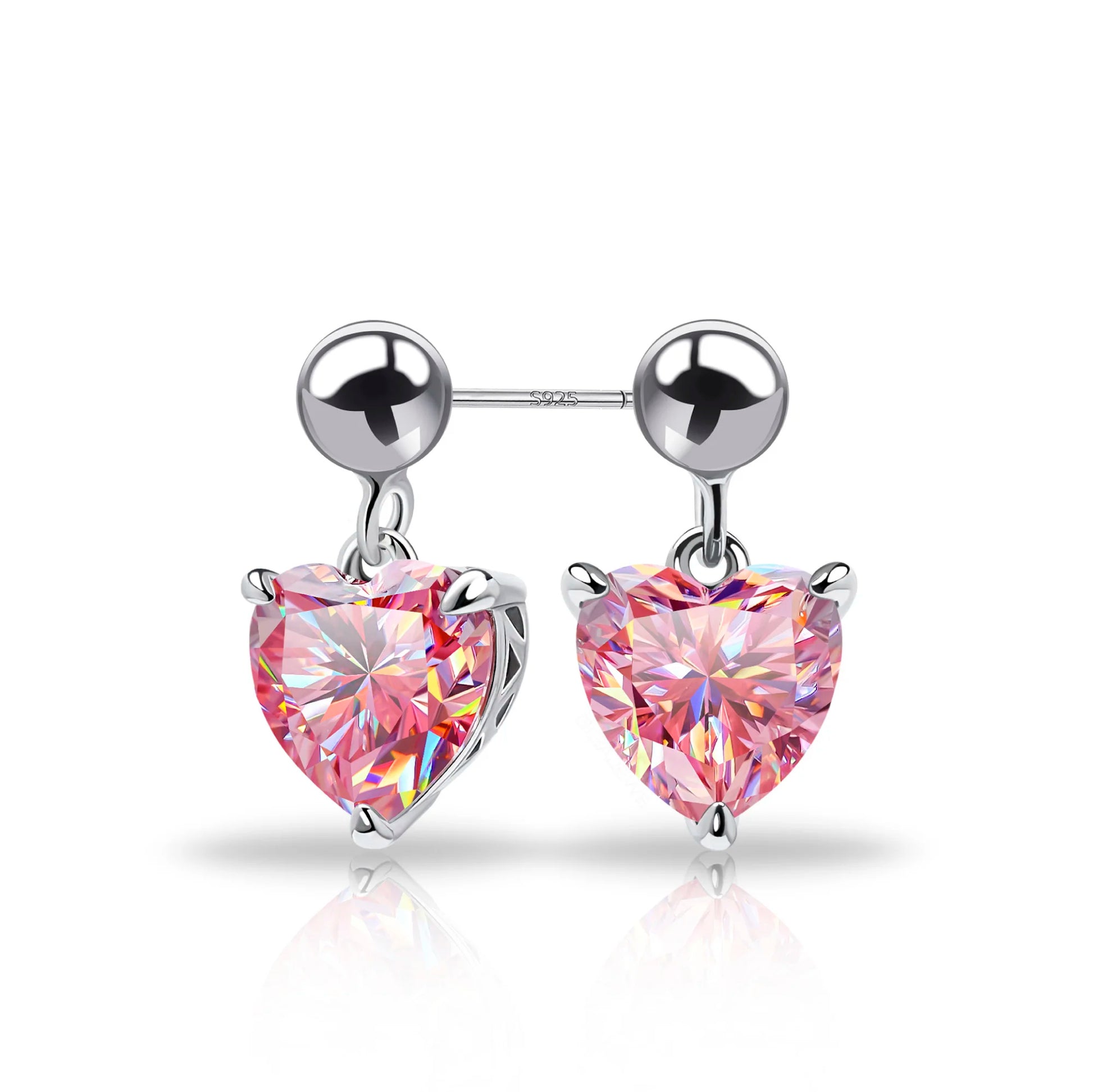 Boucles d'oreilles en argent sterling plaqué or blanc 18 carats avec moissanite taille cœur