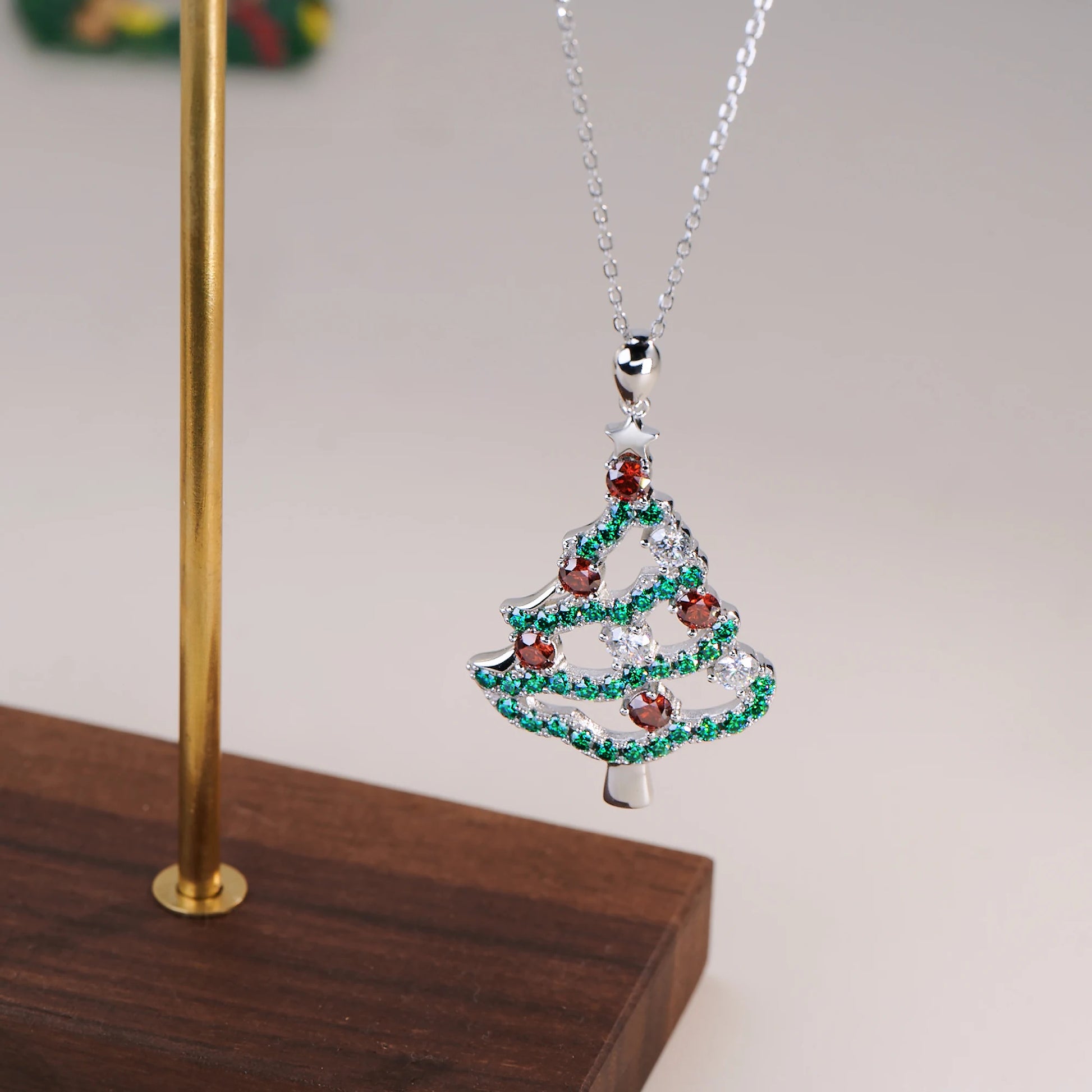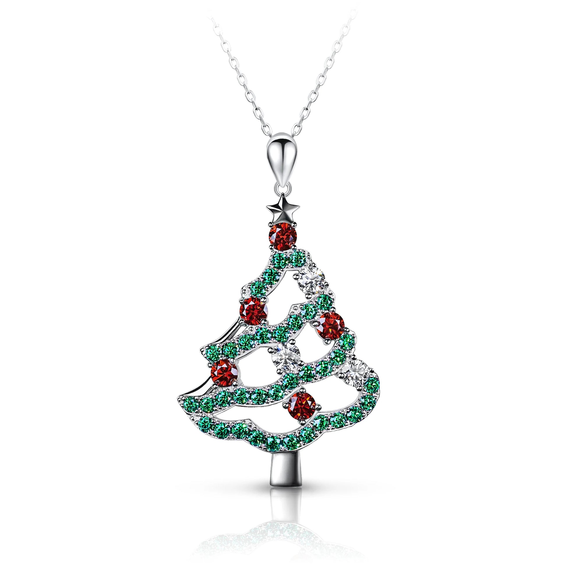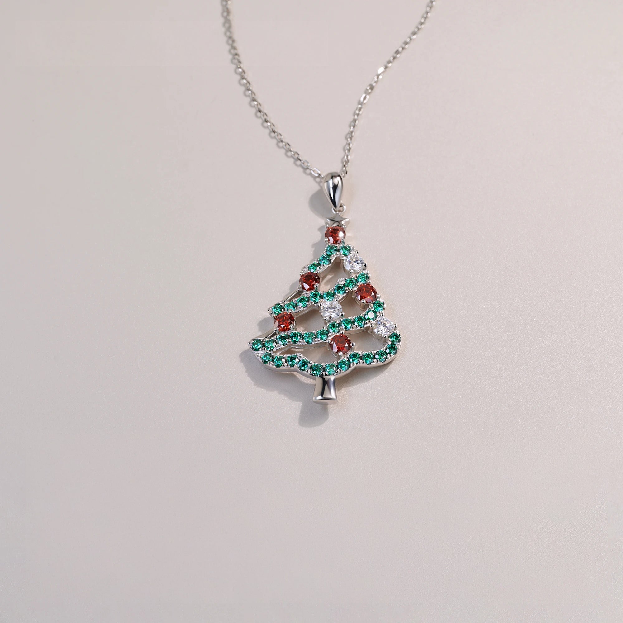 Pendentif Arbre Magique des Fêtes en Moissanite et Argent Sterling