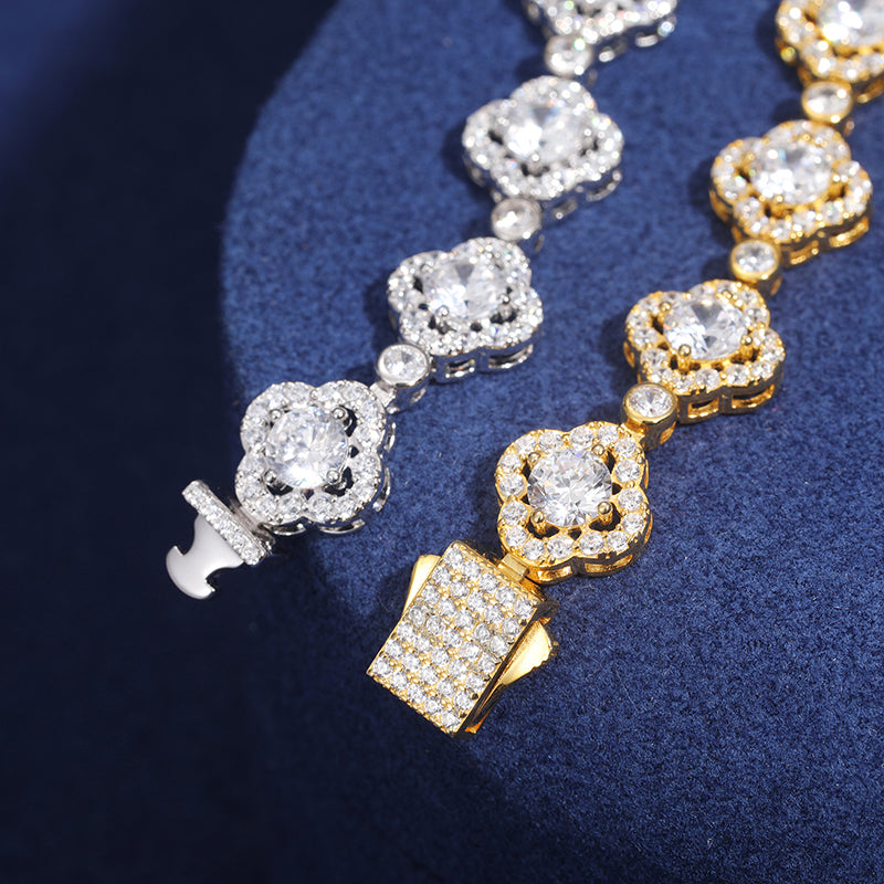 10MM FOUR LEAF CLOVER MOISSANITE BRACELET IN STERLING SILVER