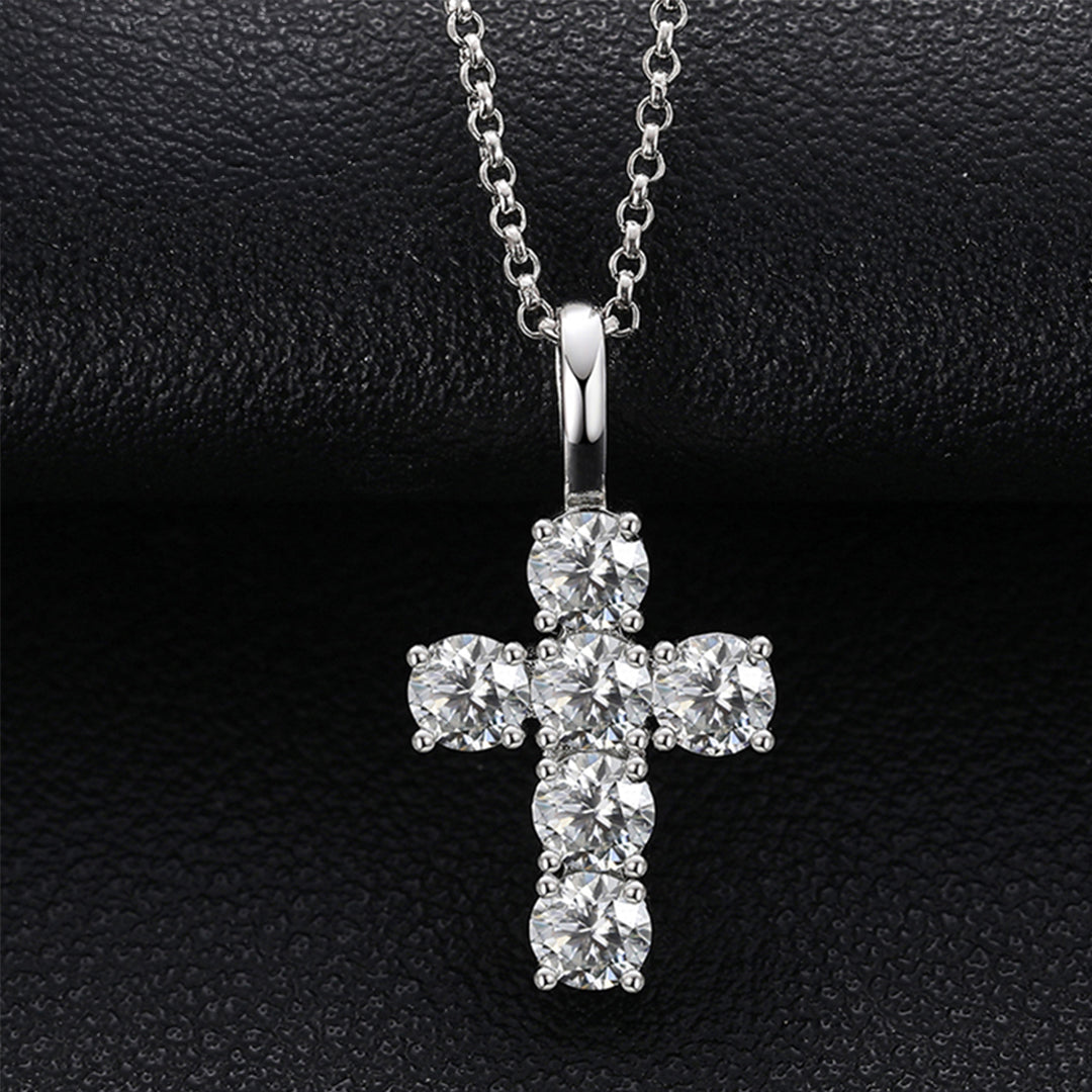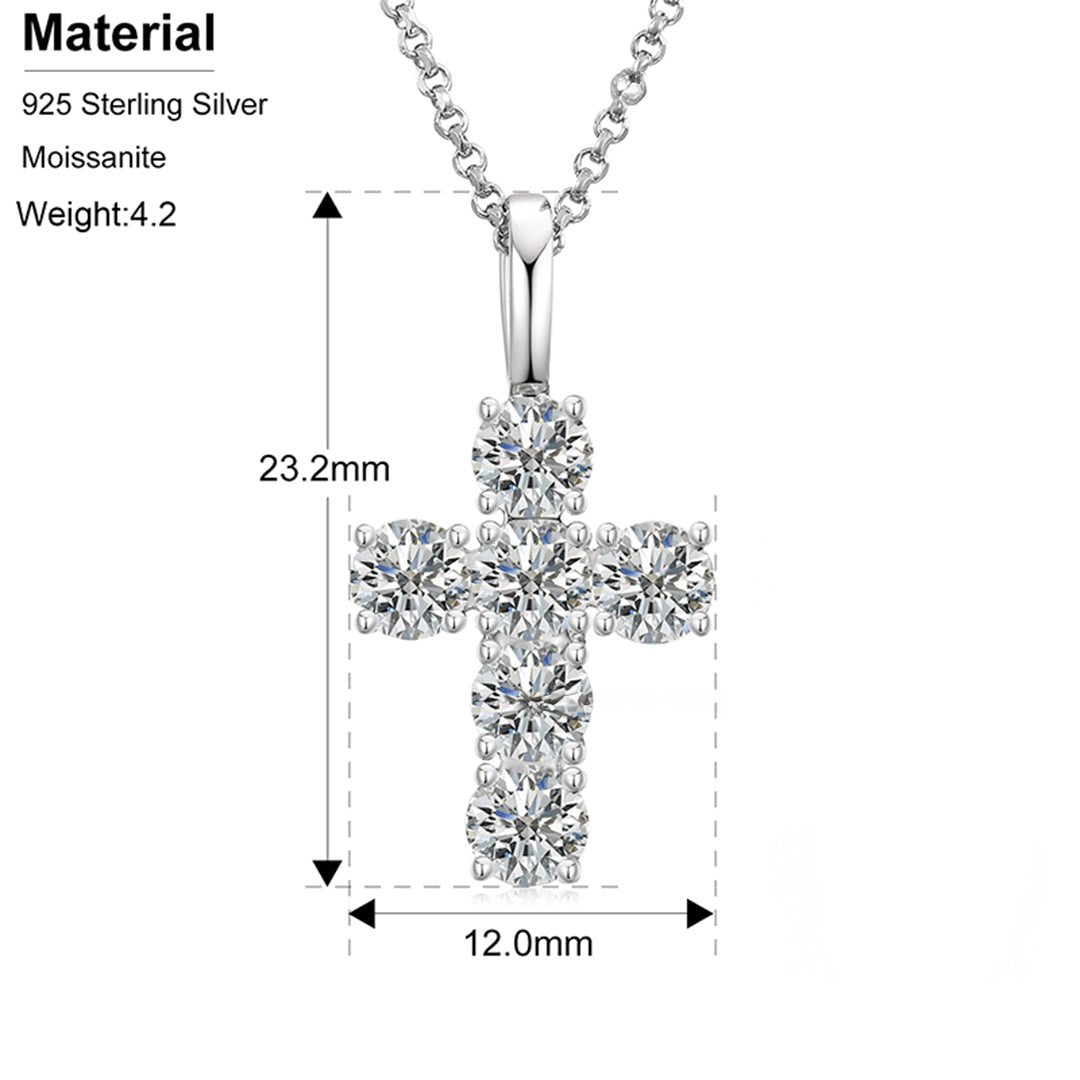 12MM MOISSANITE CROSS PENDANT NECKLACE IN STERLING SILVER