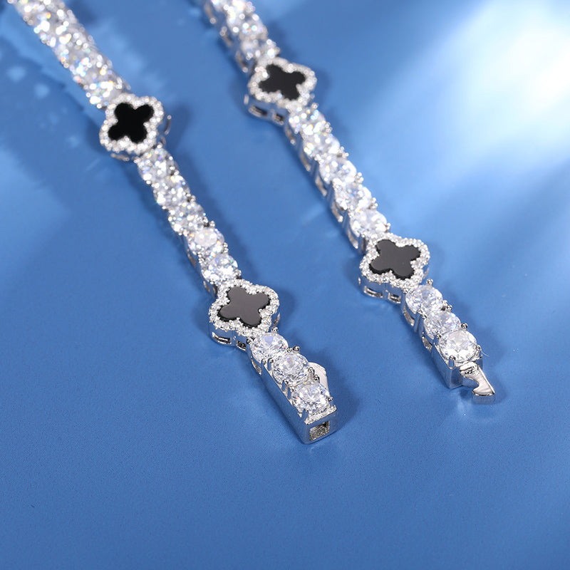 12MM MOISSANITE VAN CLEEF CLOVER TENNIS BRACELET IN STERLING SILVER