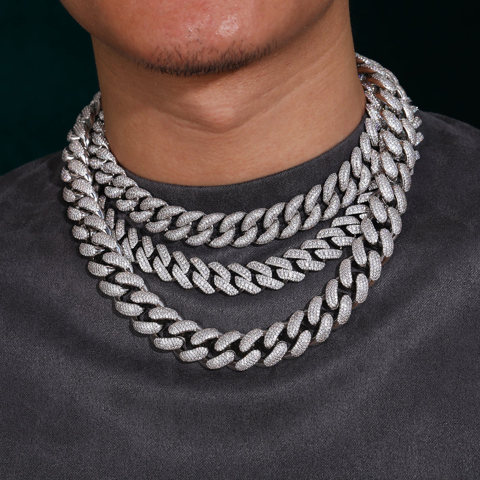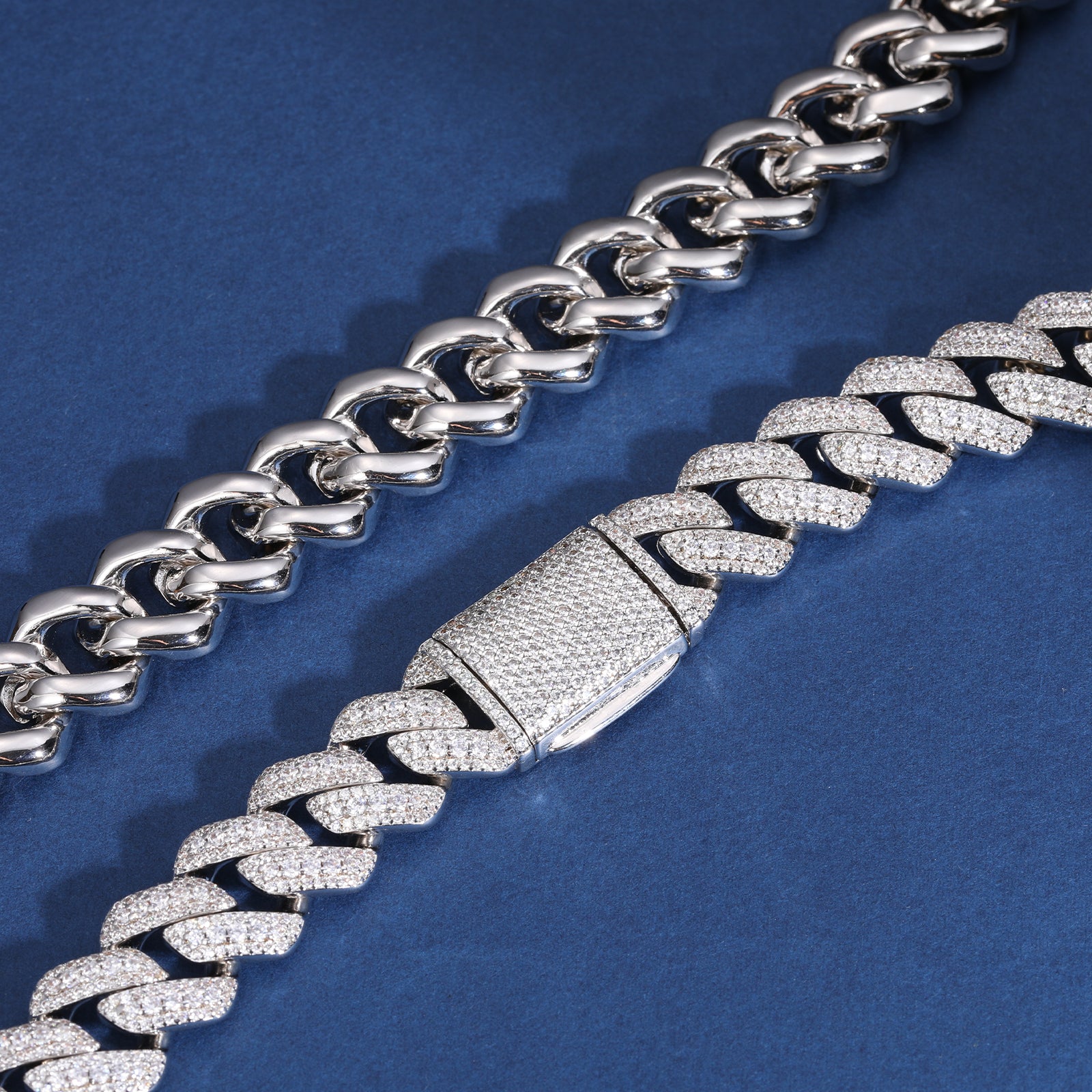 15MM MOISSANITE CUBAN LINK CHAIN NECKLACE/BRACELET IN STERLING SILVER