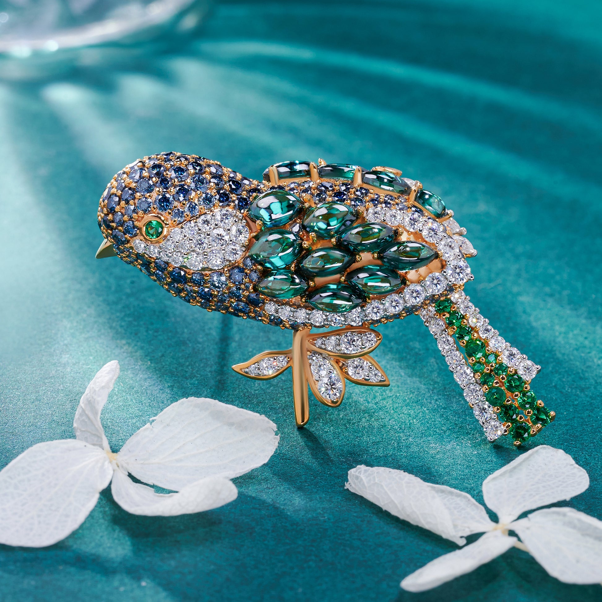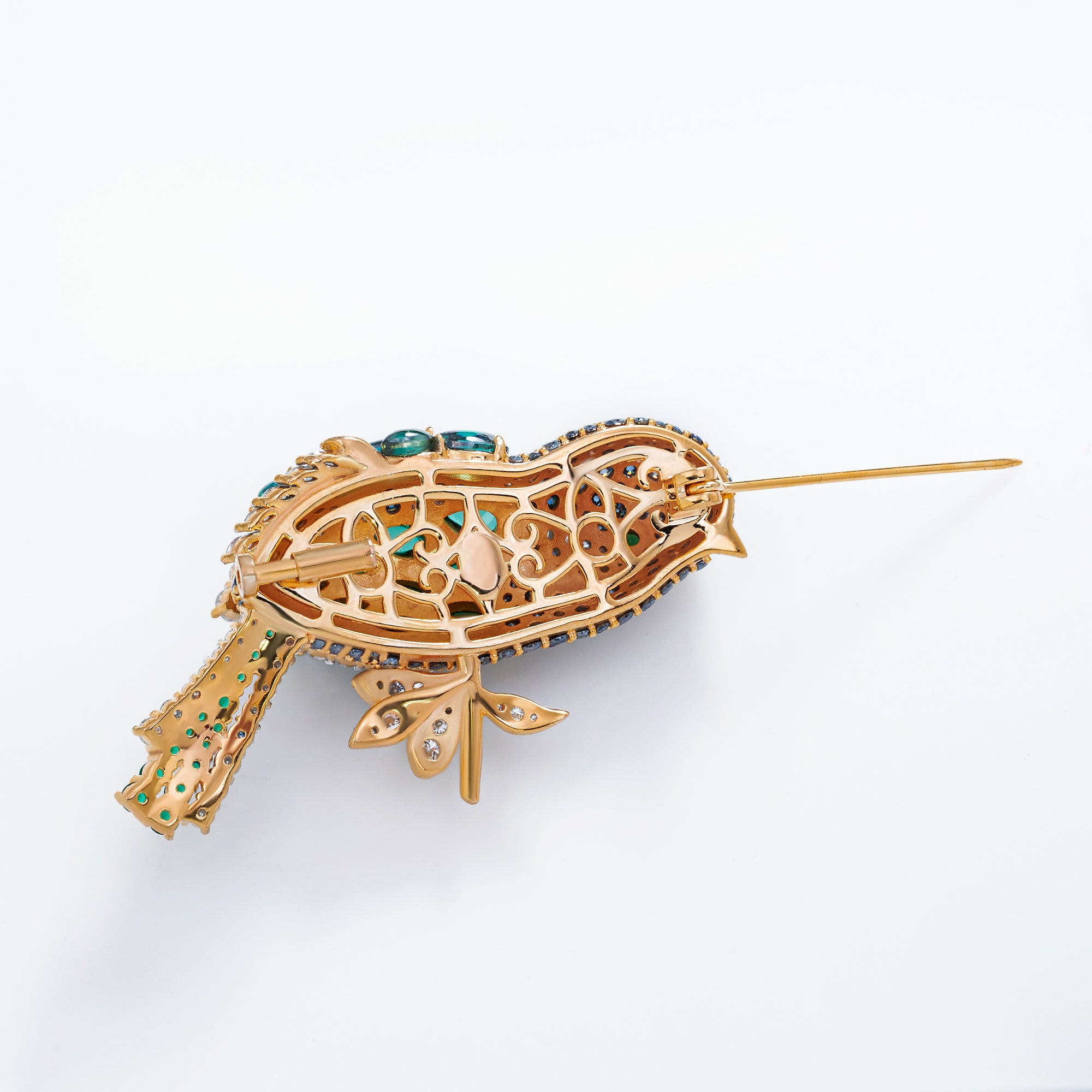 18K Gold Plated Majestic Meadow Bird Brooch in Sterling Silver: A masterpiece of color, elegance, and craftsmanship 🕊️✨. Plated in luxurious 18K gold, this sterling silver brooch showcases a radiant bird adorned with shimmering green, blue, and white stones. Symbolizing freedom and grace, it captures nature’s beauty in dazzling detail — a perfect statement piece for refined sophistication.