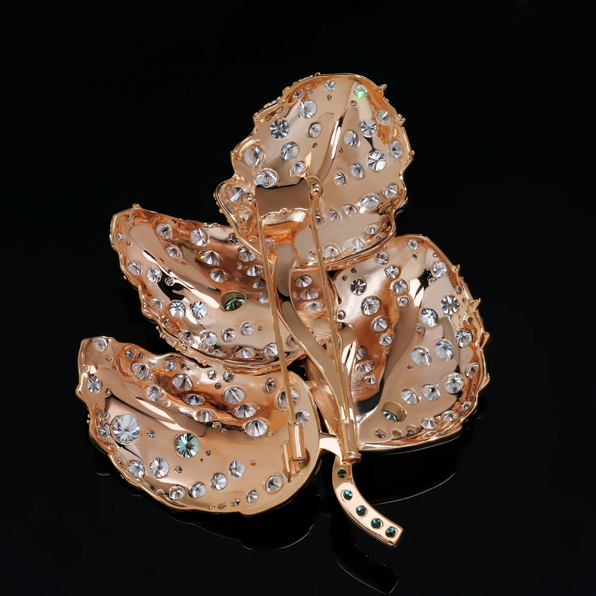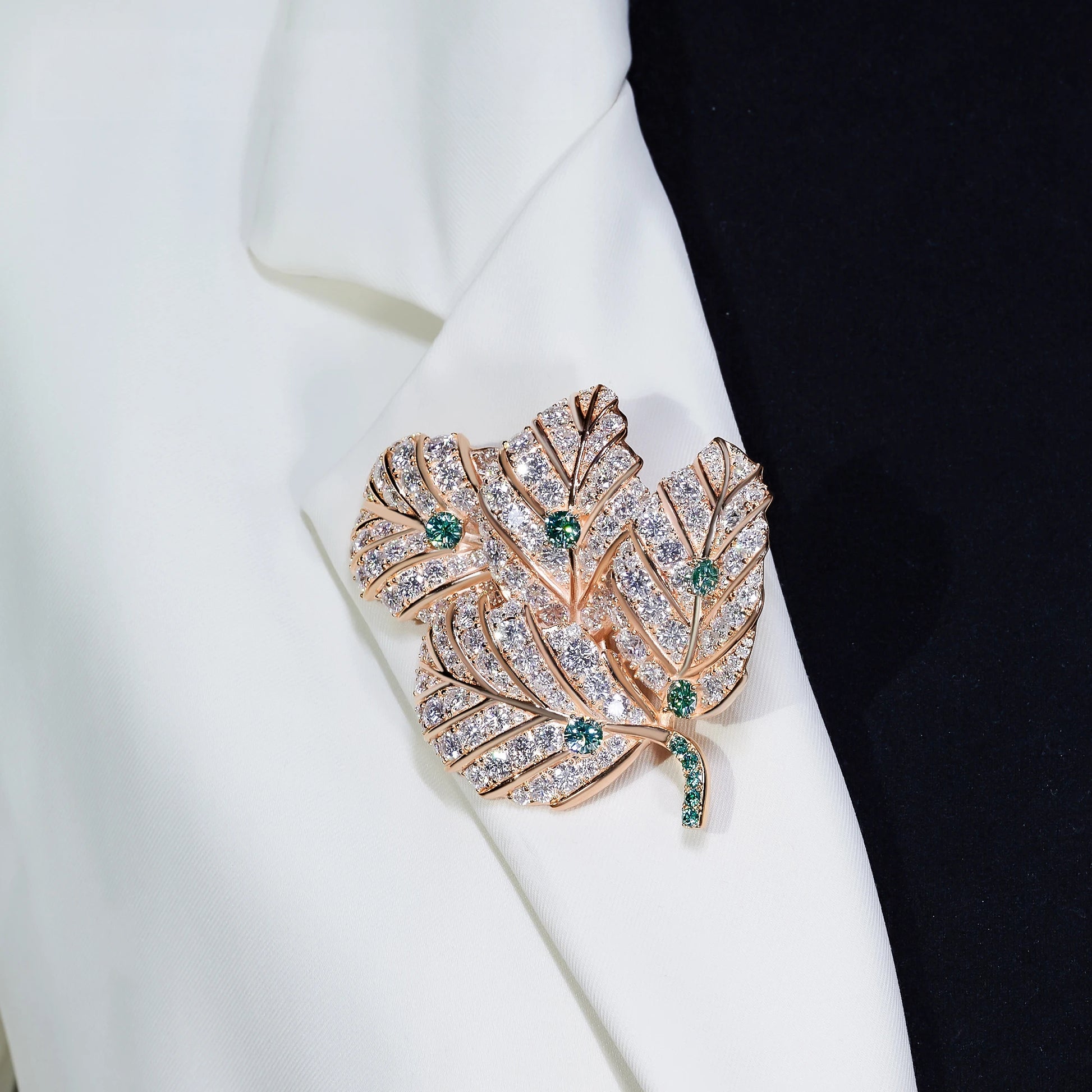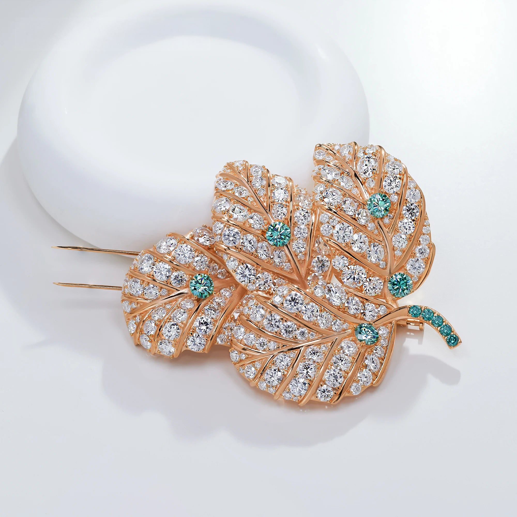 18K Gold Plated Moissanite Aurora Leaf Elegance Brooch in Sterling Silver: A stunning ode to nature’s brilliance 🍃✨. Crafted in premium sterling silver with rich 18K gold plating, this brooch features intricately detailed leaves adorned with sparkling moissanite and subtle green accents. Radiating timeless charm and sophistication, it’s a perfect statement of elegance and grace for any occasion.
