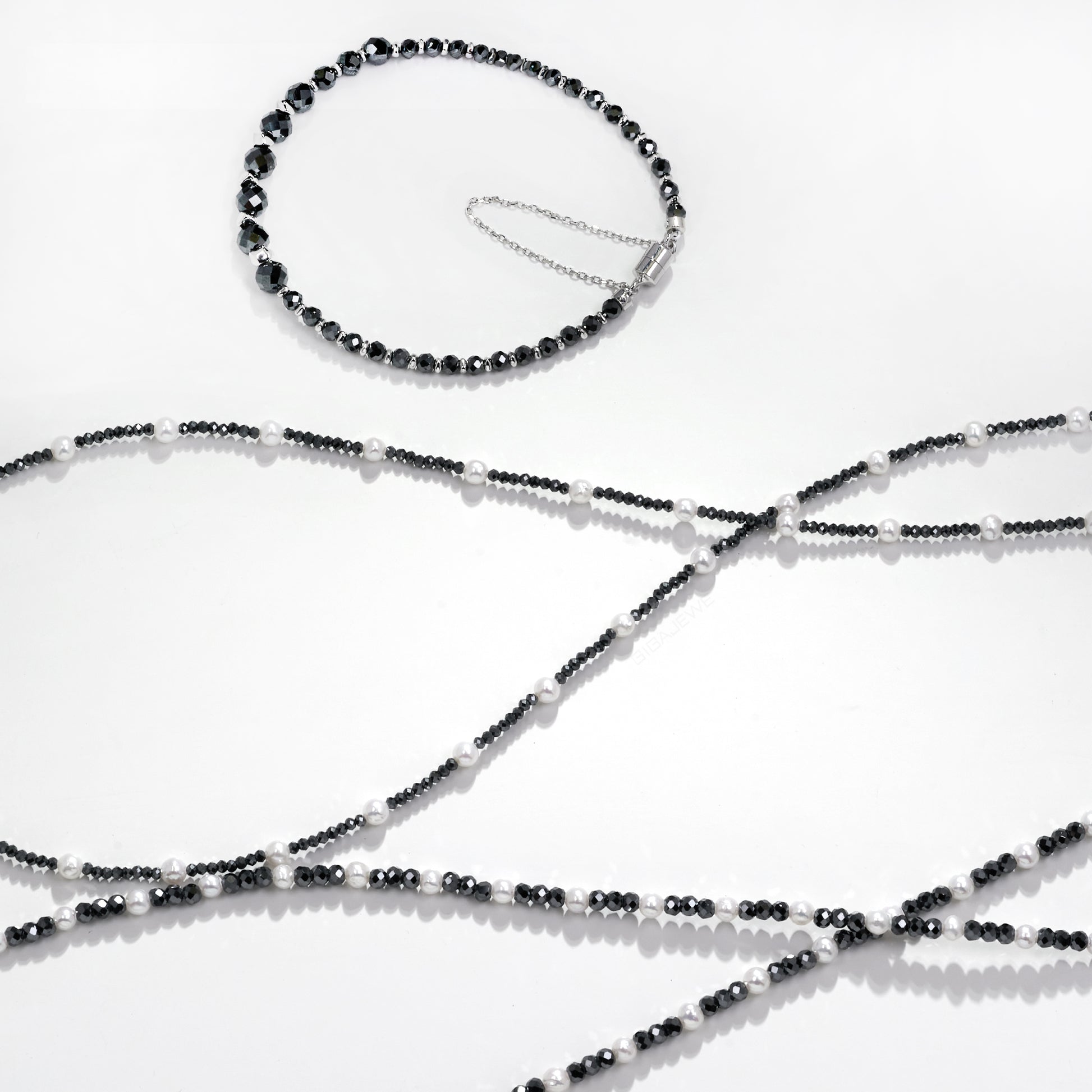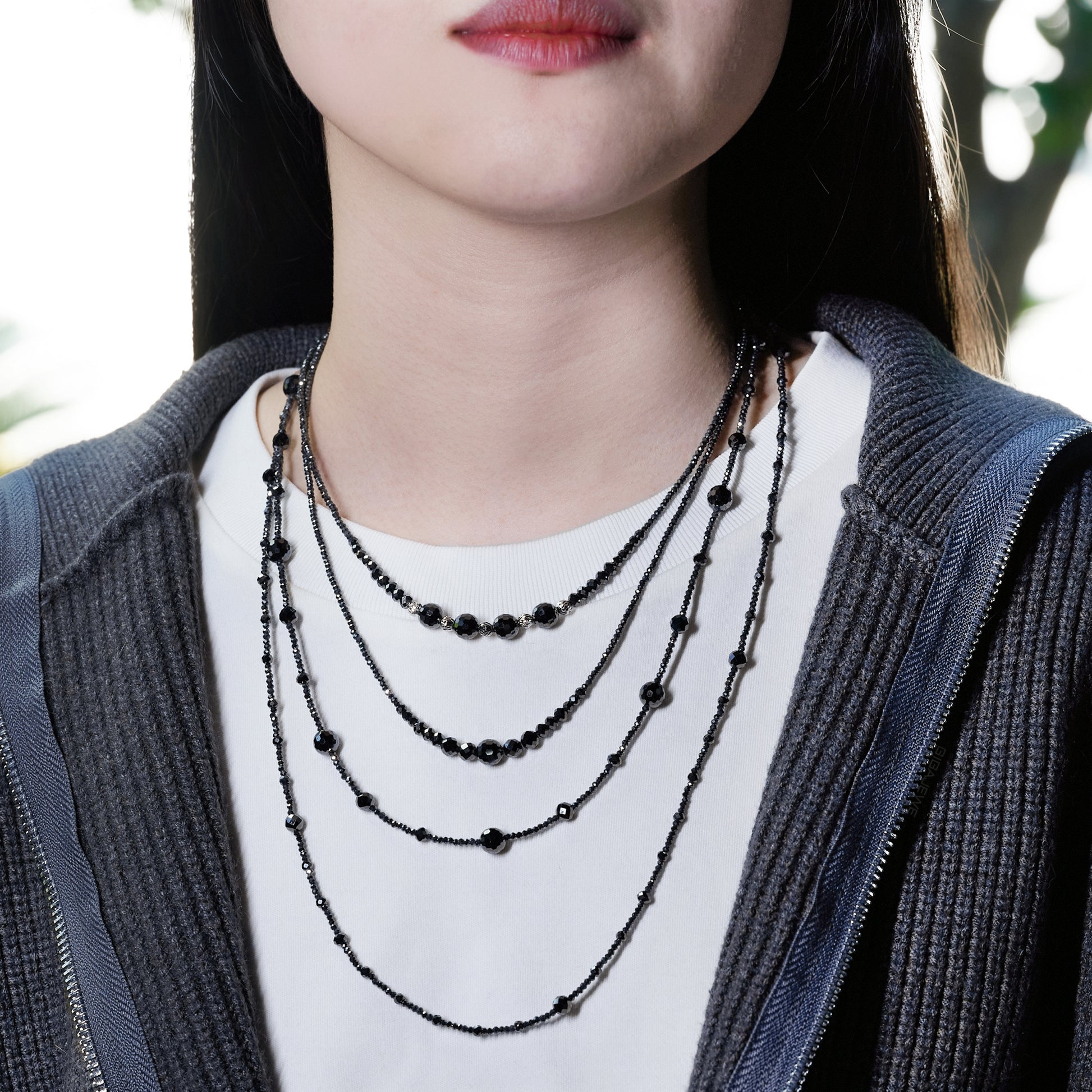 18K White Gold Plated Moissanite Black Beads Necklace Chain in Sterling Silver: A sleek blend of tradition and modern elegance ⚫✨. This refined necklace features polished black moissanite beads that shimmer subtly with every move, complemented by a radiant 18K white gold-plated sterling silver chain. Perfect for both everyday wear and special occasions, it embodies understated luxury and timeless sophistication.
