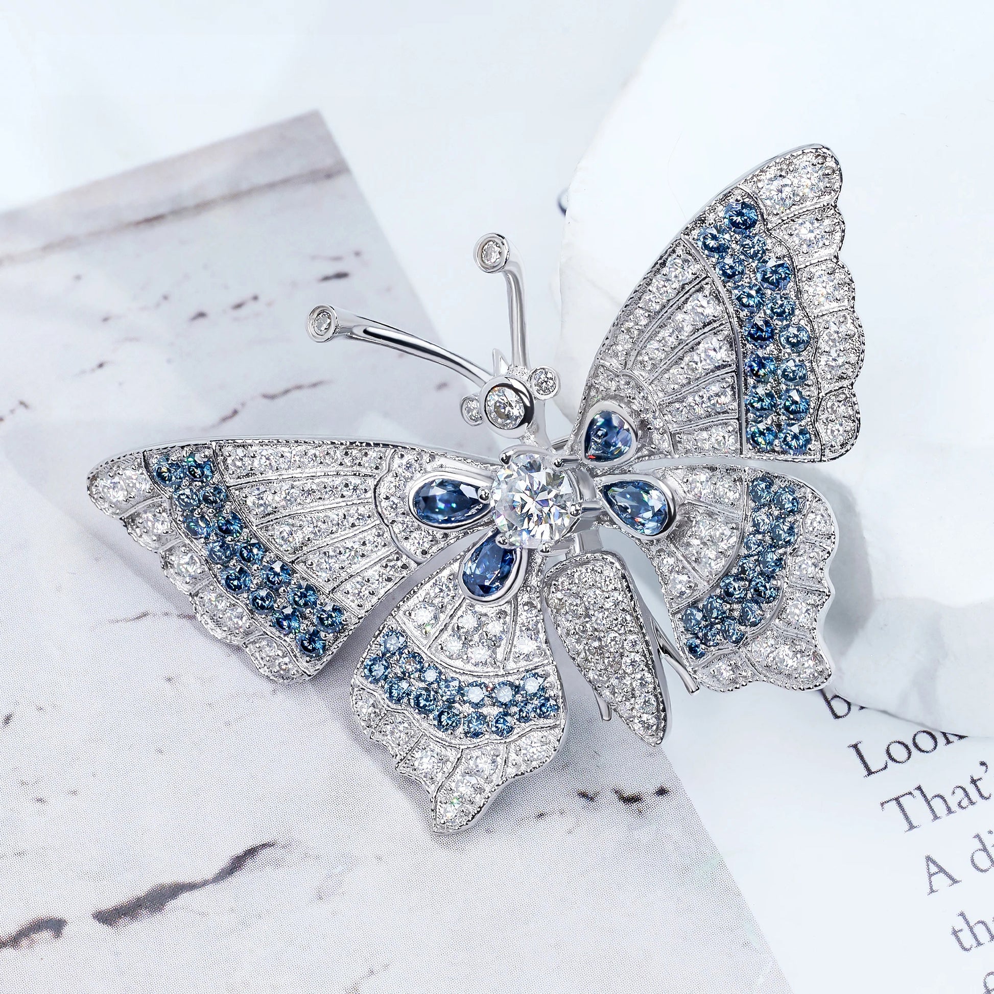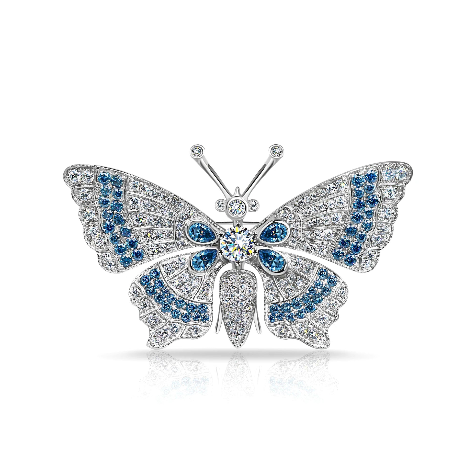 18K White Gold Plated Moissanite Ethereal Wings Butterfly Brooch in Sterling Silver: A masterpiece of grace and brilliance 🦋✨. Crafted in premium sterling silver with a luxurious 18K white gold finish, this brooch features shimmering moissanite stones arranged in delicate butterfly wings. Symbolizing transformation and elegance, it adds a touch of radiant sophistication to any look.