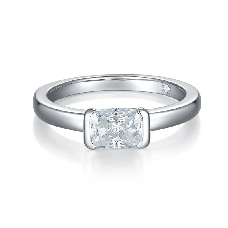 Introducing the 1ct Radiant Cut Moissanite Ring in Sterling Silver. This exquisite ring features a brilliant 1-carat radiant-cut moissanite stone, meticulously set in a sleek sterling silver band. Perfect for those who appreciate modern elegance and timeless beauty, this ring makes a striking statement of sophistication and grace. Ideal for engagements, anniversaries, or as a luxurious gift, it combines the brilliance of moissanite with the enduring allure of sterling silver. Elevate your jewelry collection with this captivating and versatile piece. 💍💎