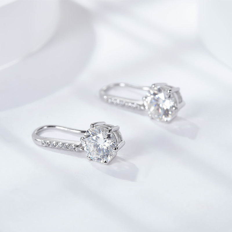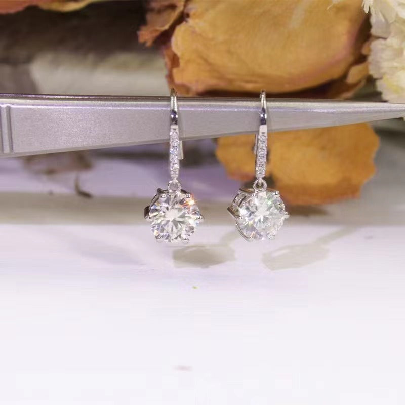 1CT ROUND CUT MOISSANITE DROP EARRINGS IN STERLING SILVER