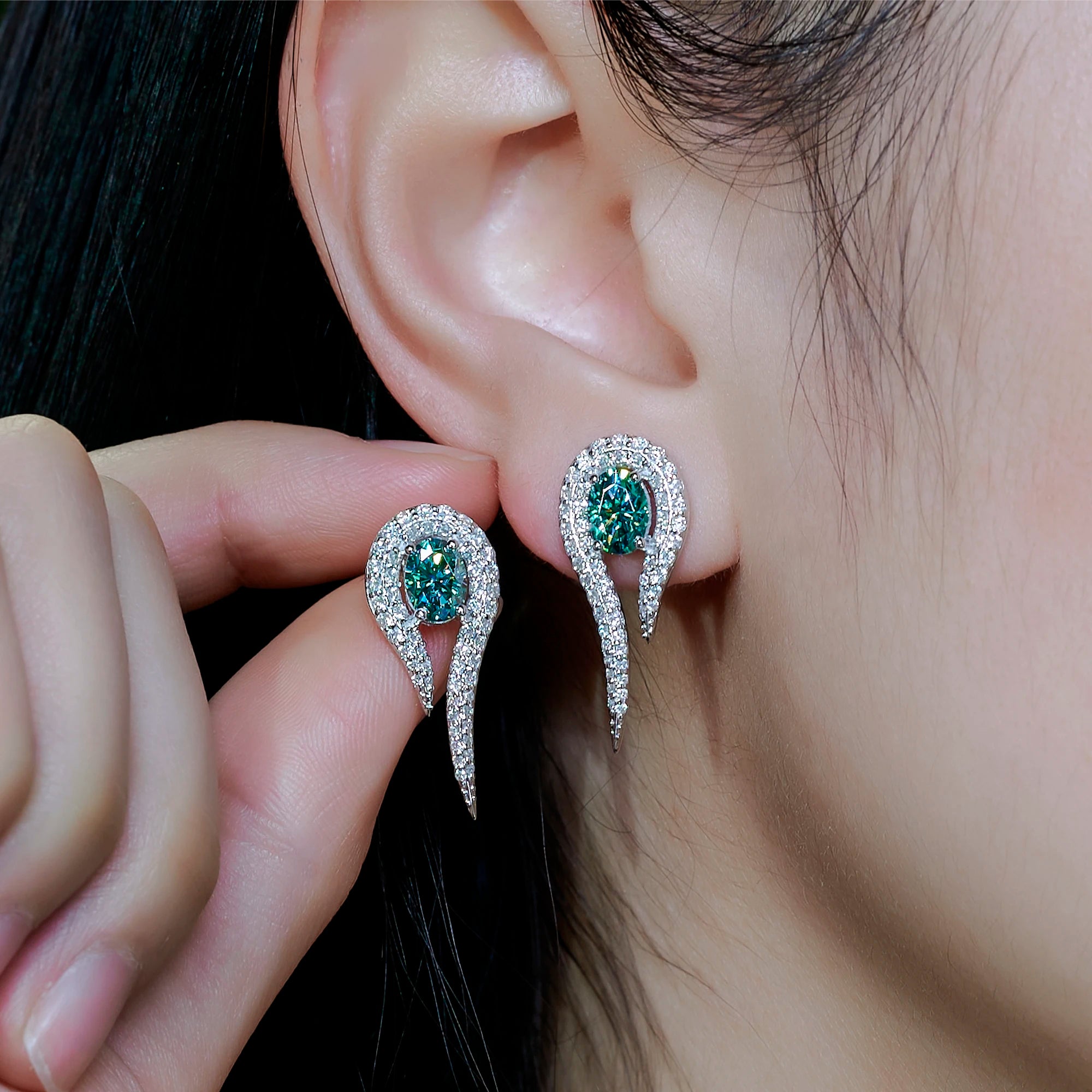 2.8CT Moissanite Emerald Tide Earrings: in sterling silver capture the essence of flowing waves and timeless beauty. Featuring vivid green moissanite centers surrounded by shimmering white stones, these earrings radiate brilliance from every angle. Elegant and contemporary, they’re crafted to add a touch of luxury and sophistication to any look.