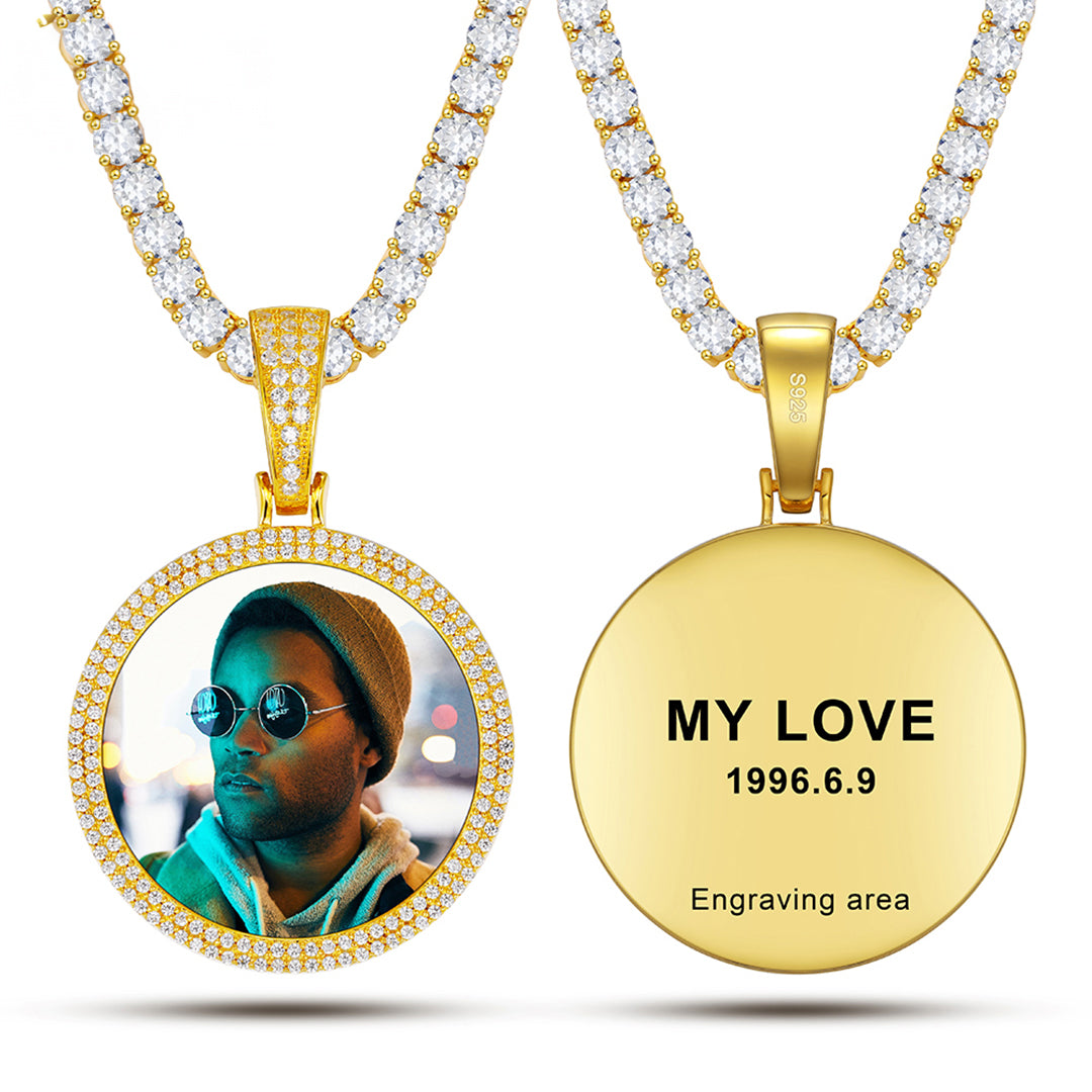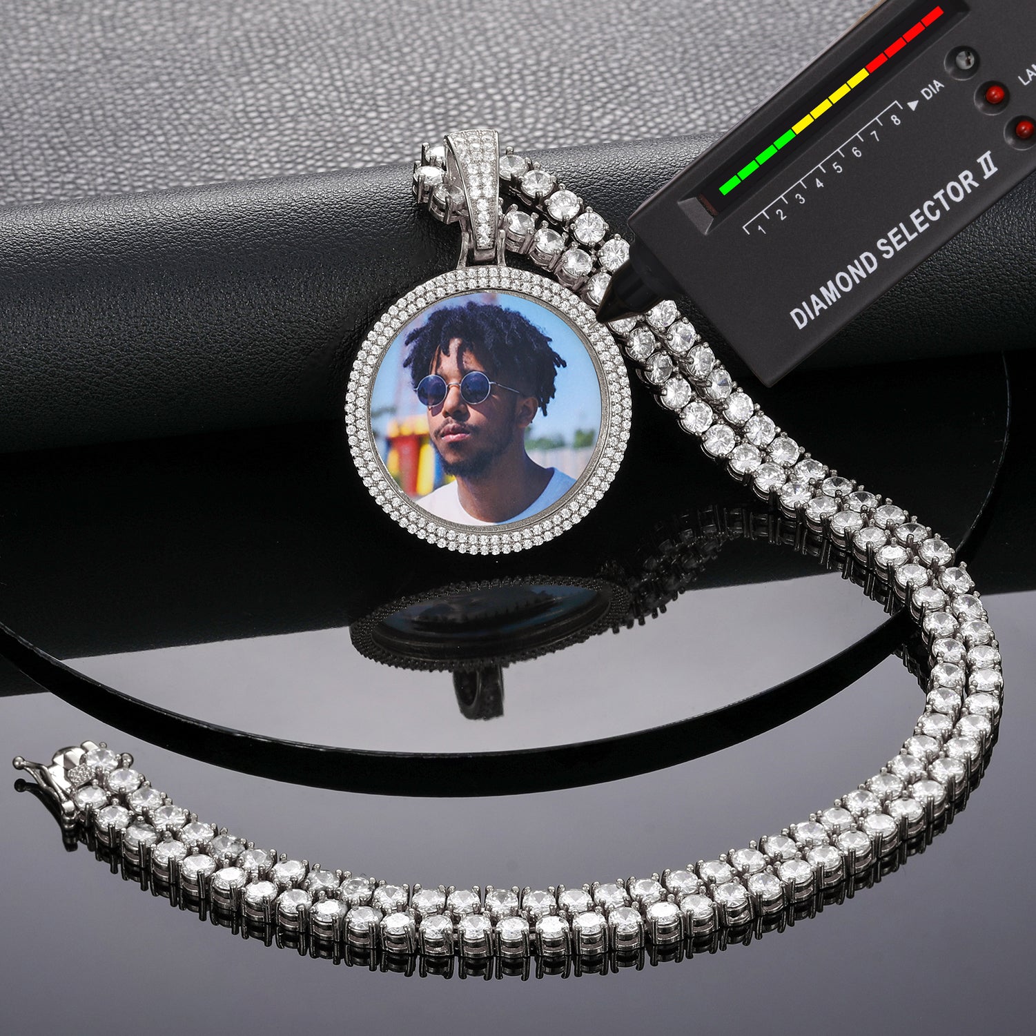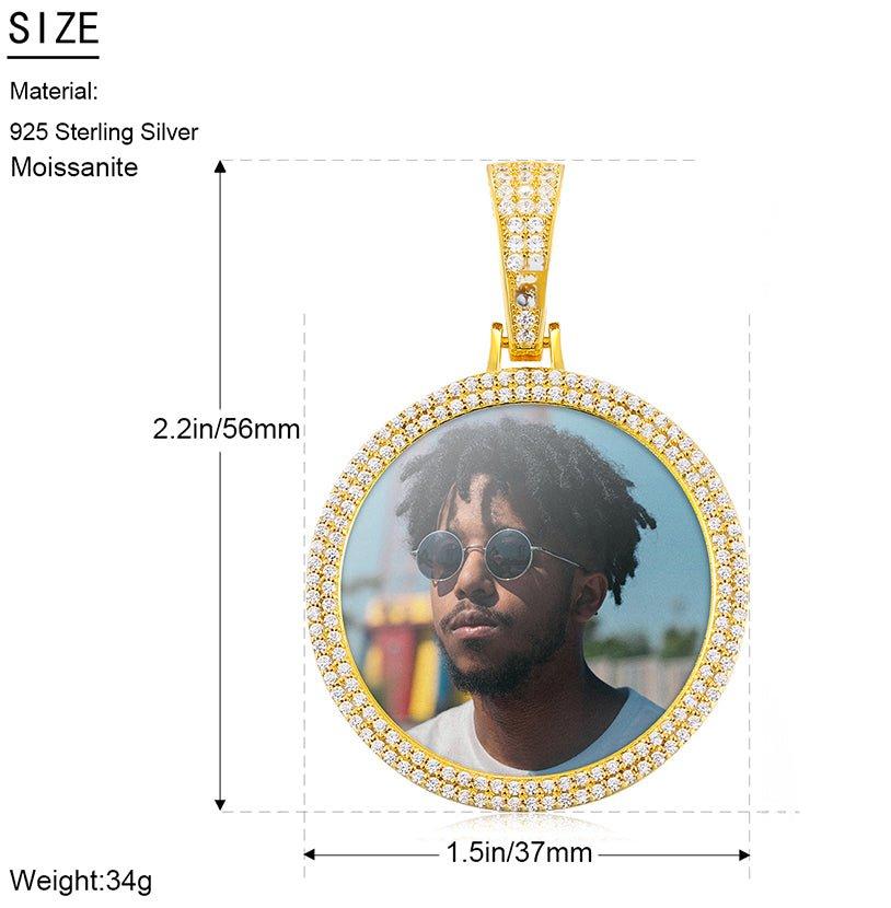 2 ROWS MOISSANITE DIAMOND ROUND CUSTOM PHOTO PENDANT IN STERLING SILVER