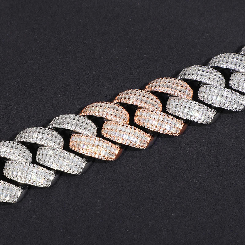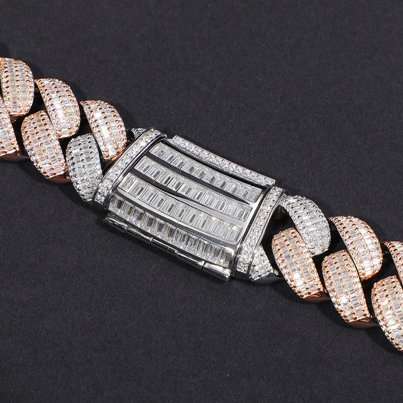 25MM TWO TONE BAGUETTE MOISSANITE CUBAN NECKLACE/BRACELET IN STERLING SILVER