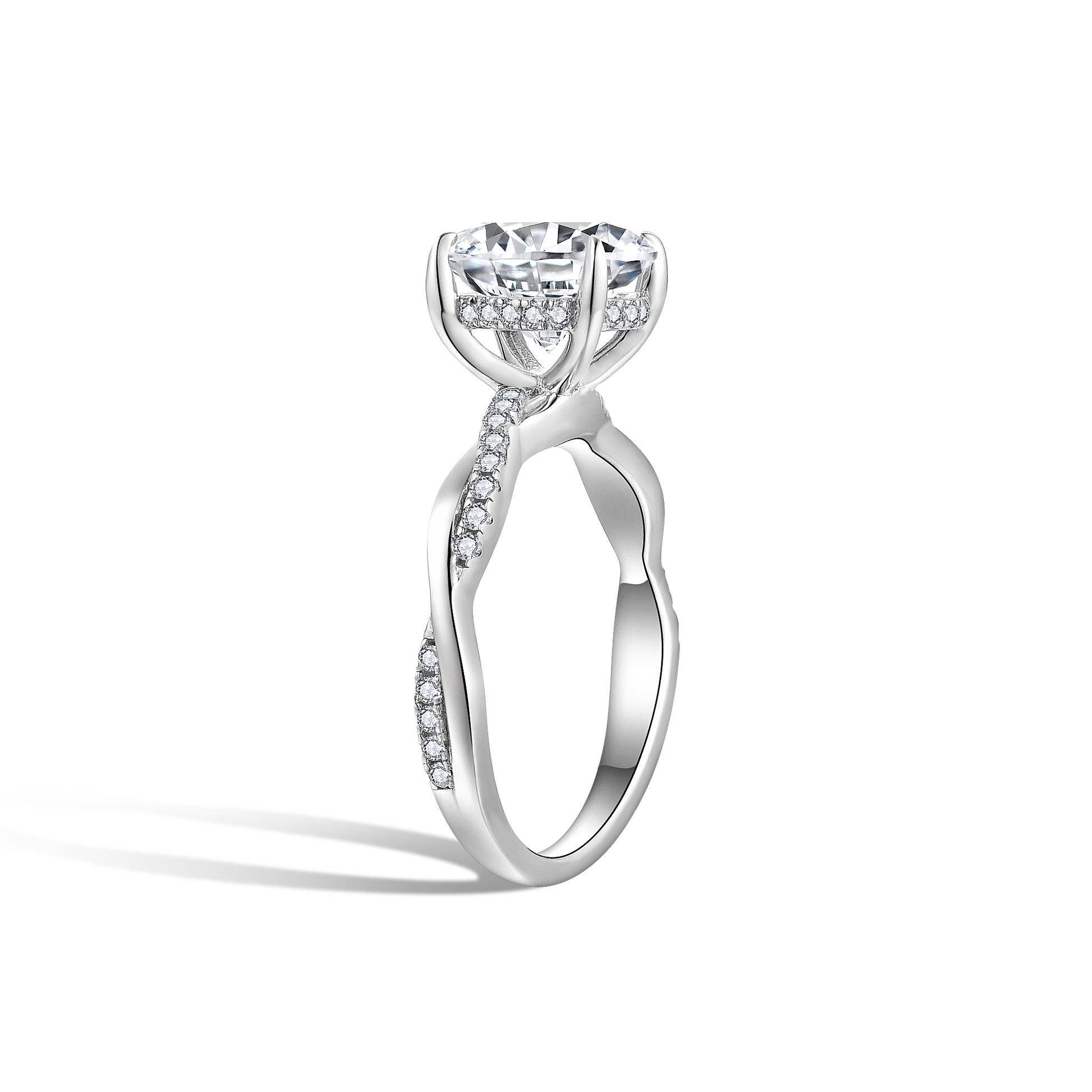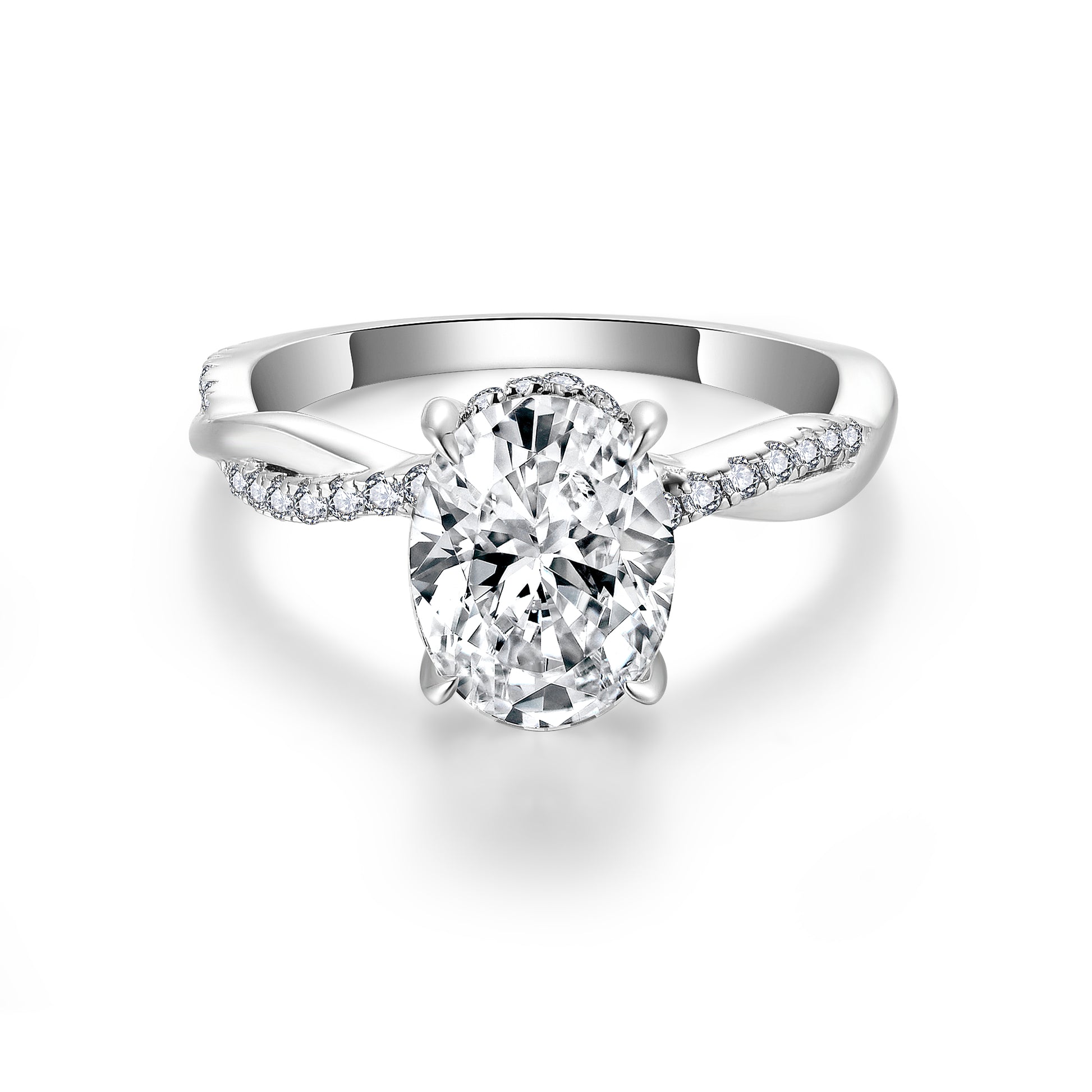 2CT TWISTED SHANK MOISSANITE OVAL CUT RING IN STERLING SILVER