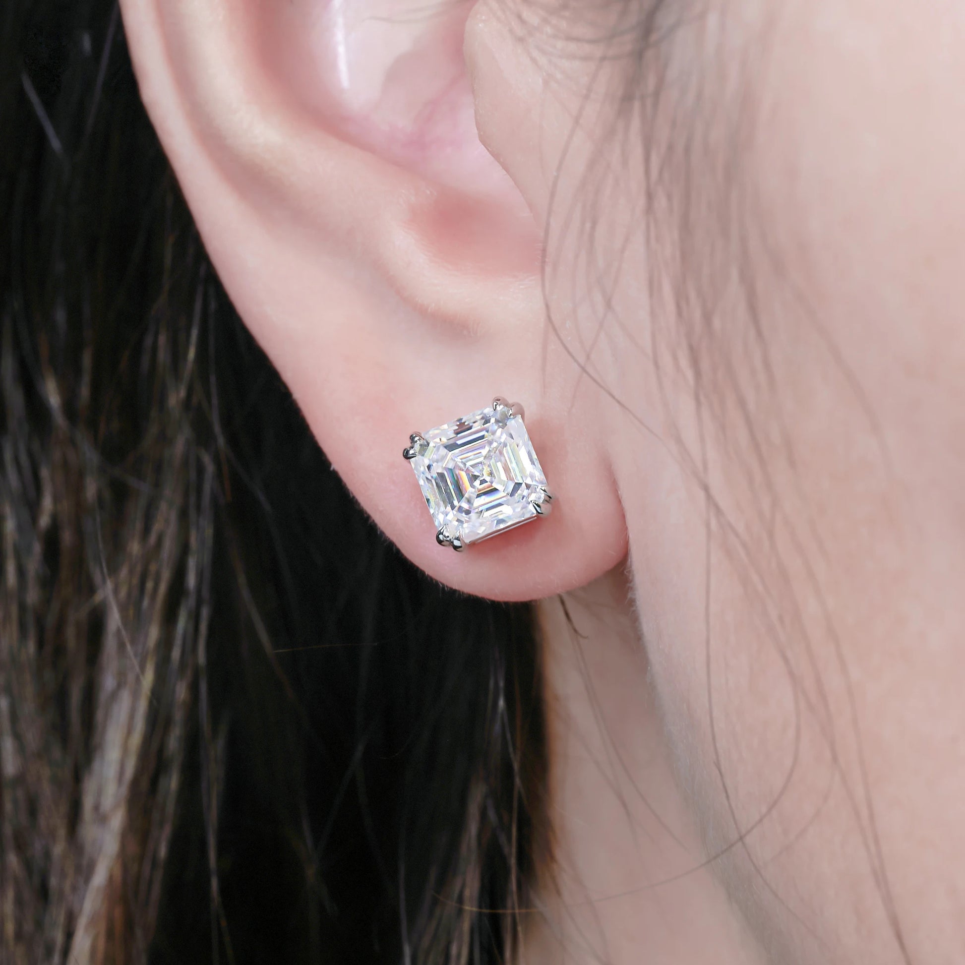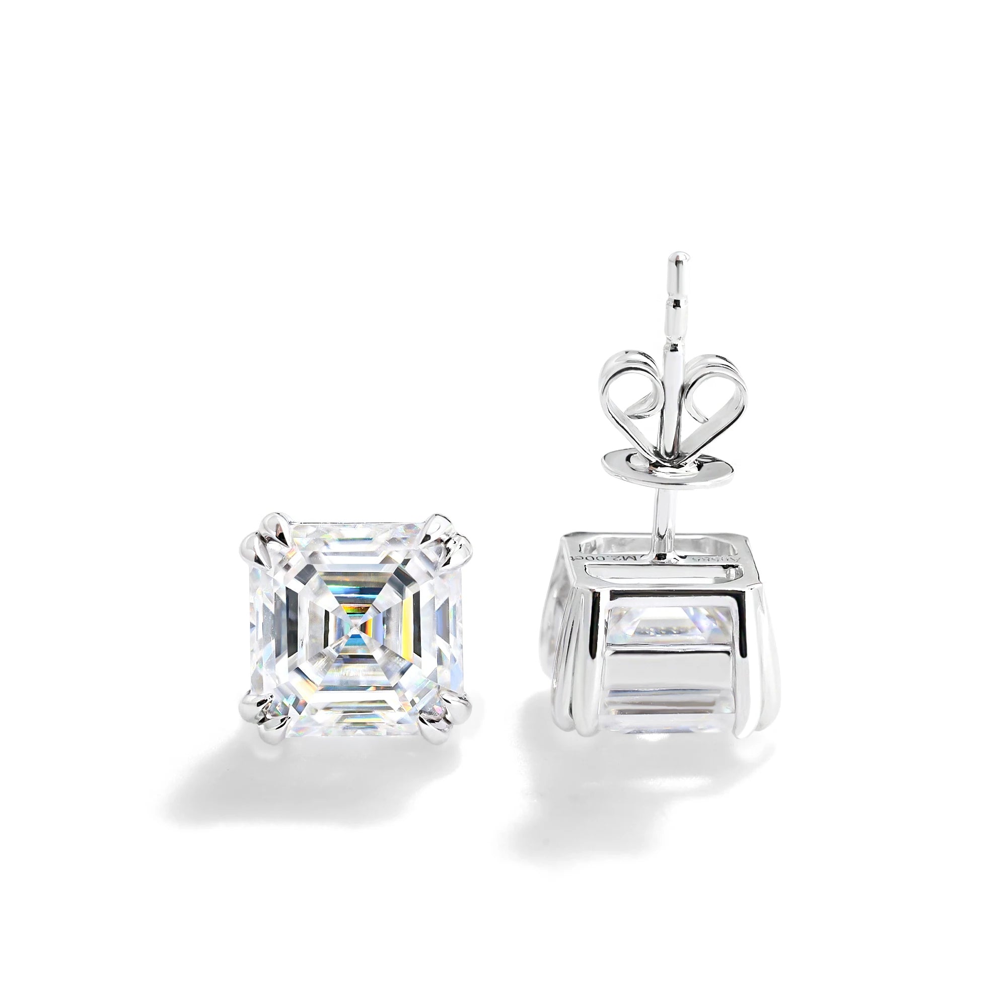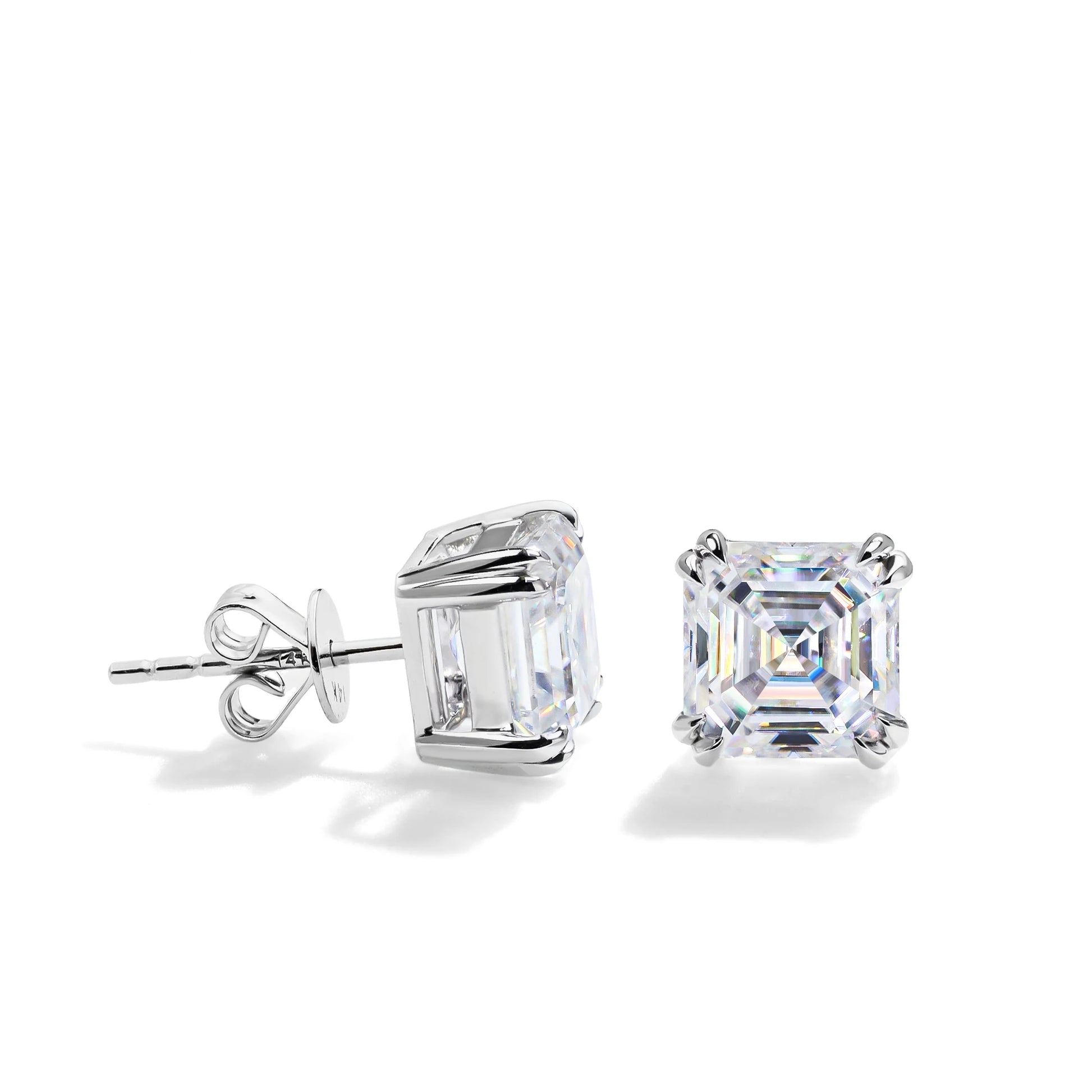 4CT ASSCHER CUT MOISSANITE STUD EARRINGS IN SOLID WHITE GOLD