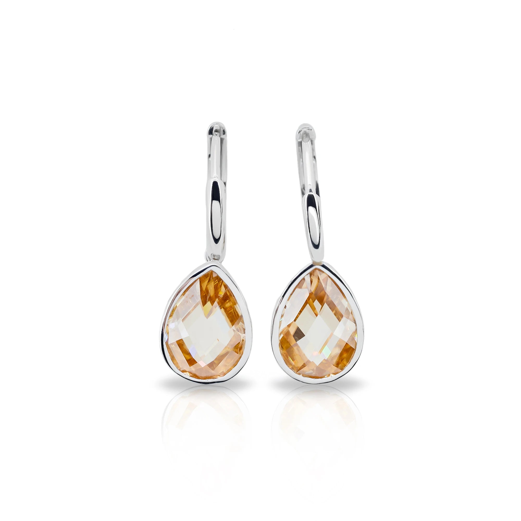 4CT CHAMPAGNE PEAR CUT MOISSANITE DROP EARRINGS IN SOLID GOLD