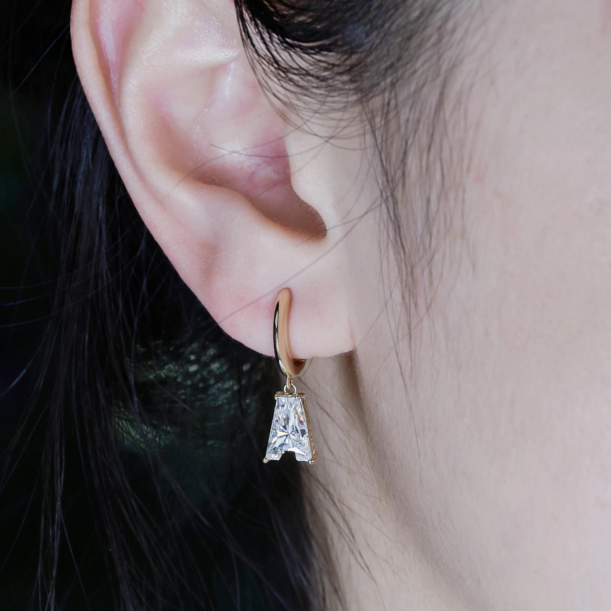 4CT MOISSANITE INITIAL EARRING IN SOLID GOLD