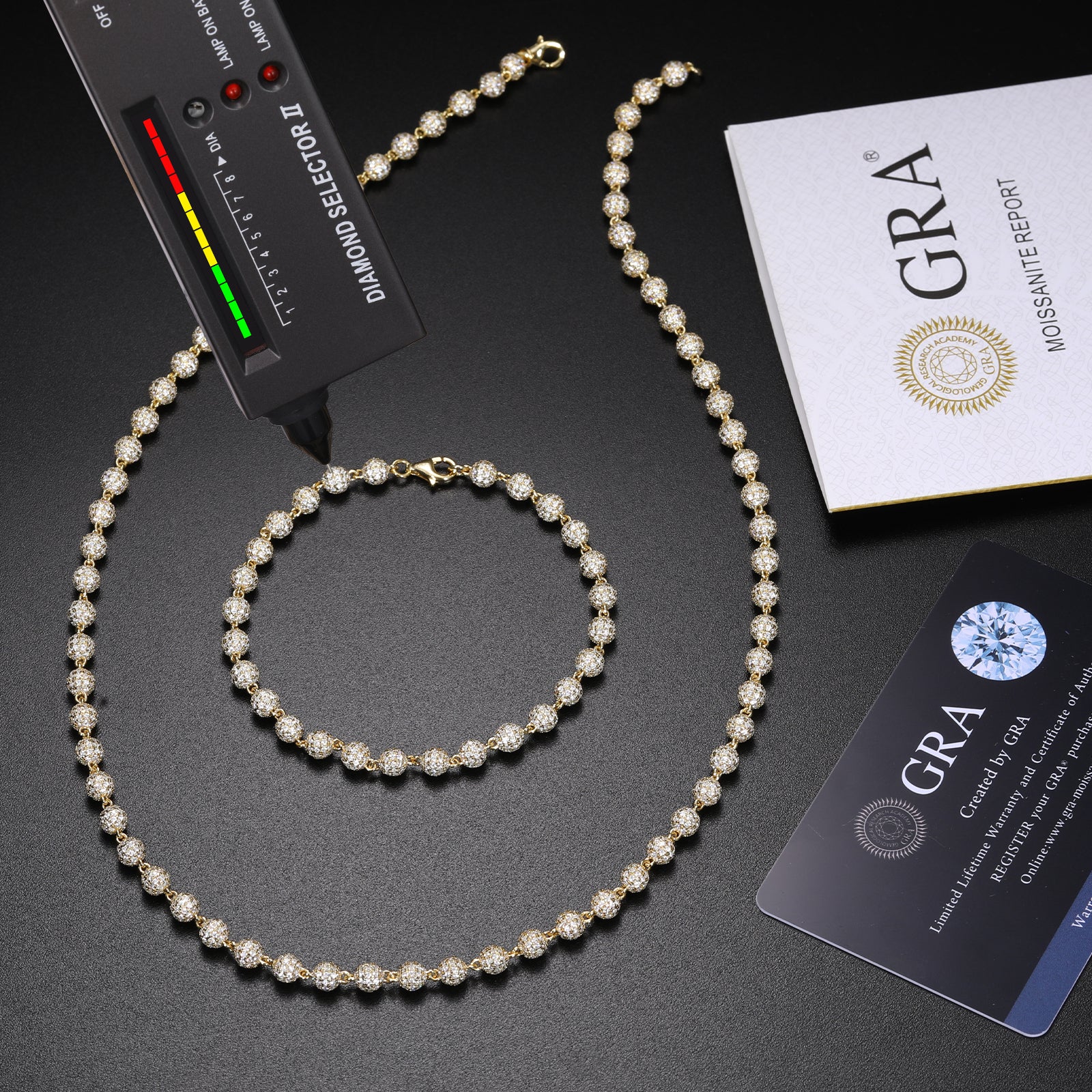 5MM 7MM 10MM MOISSANITE BEAD LINK CHAIN NECKLACE/BRACELET IN STERLING SILVER