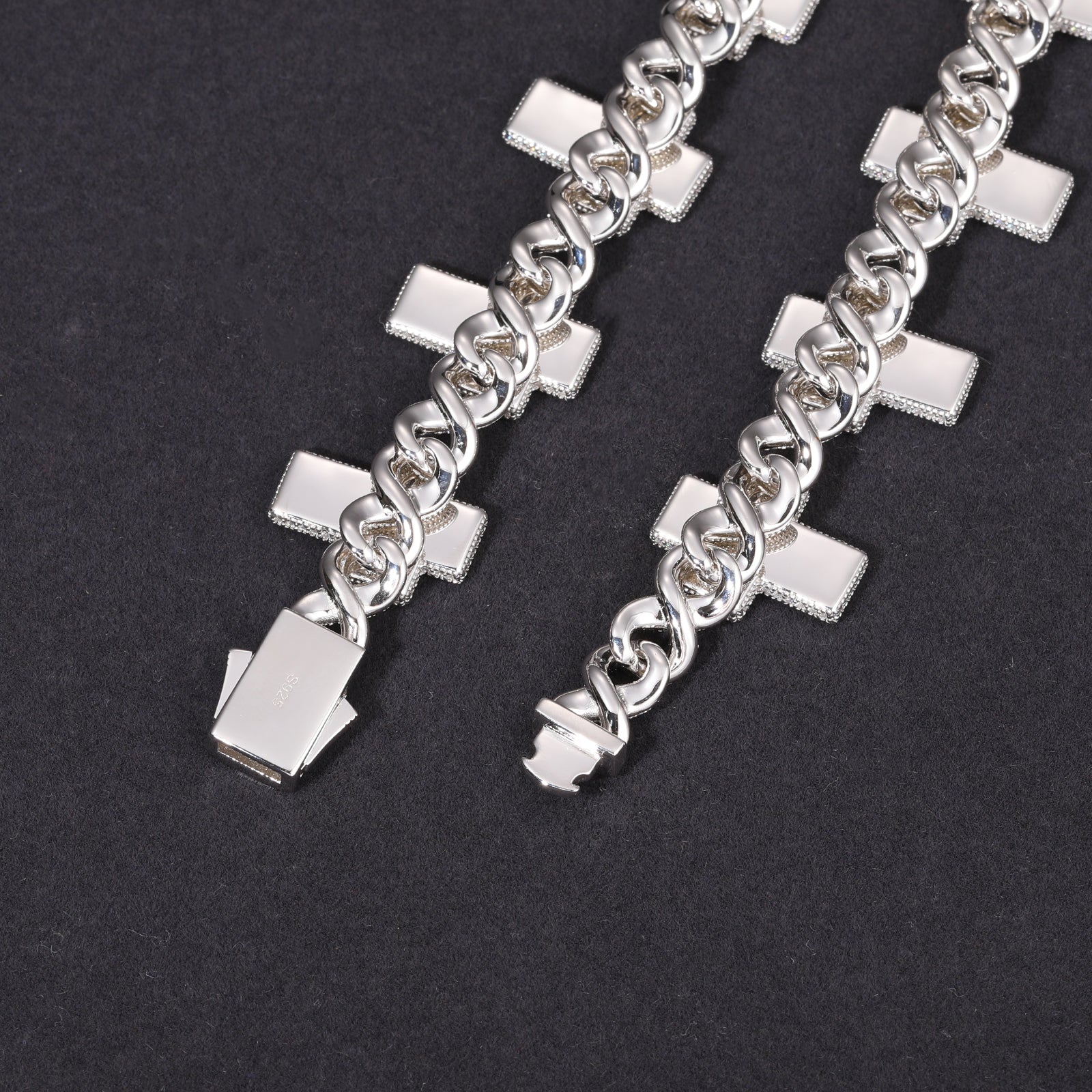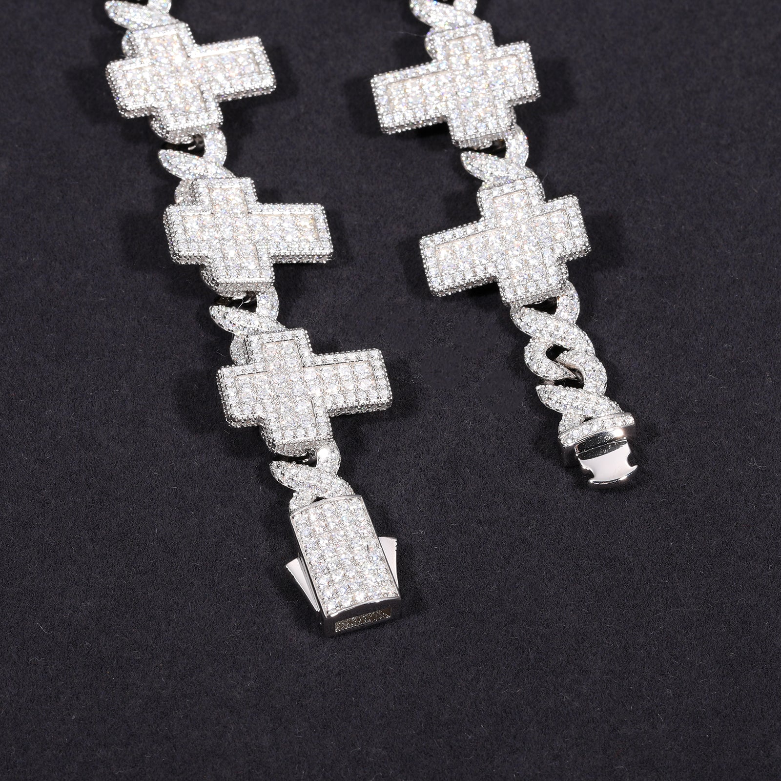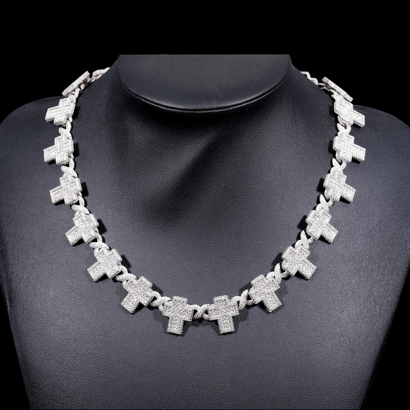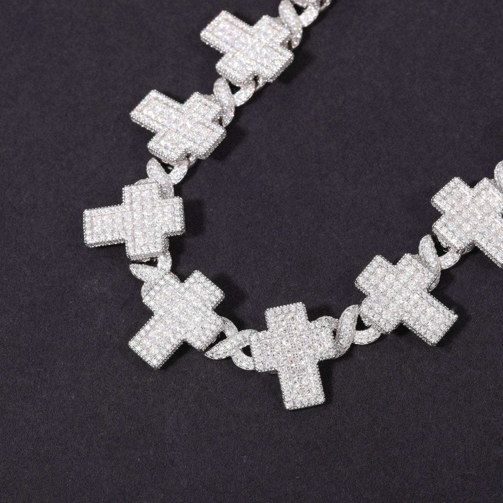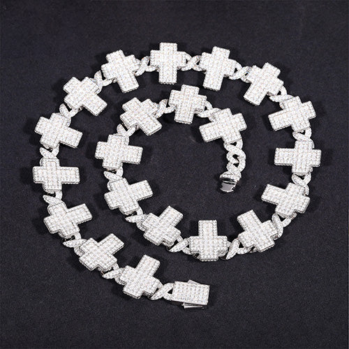 8MM CROSS MOISSANITE LINK CHAIN NECKLACE IN STERLING SILVER