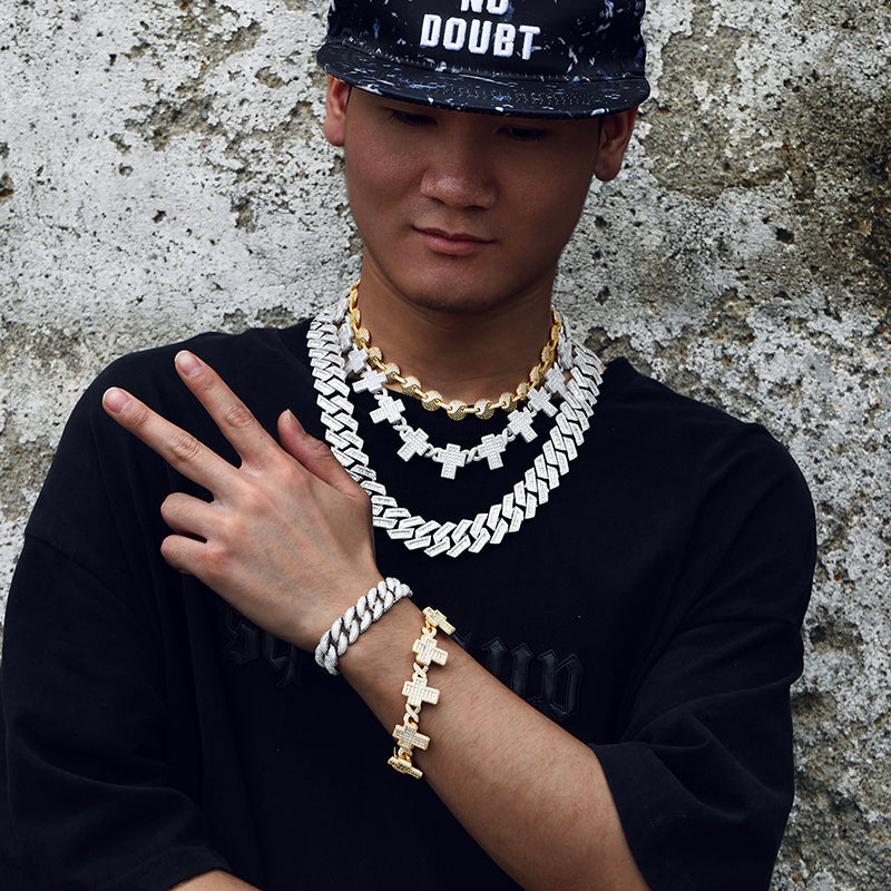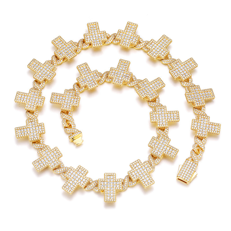 8MM MOISSANITE CROSS INFINITY CUBAN LINK CHAIN NECKLACE/BRACELET IN STERLING SILVER