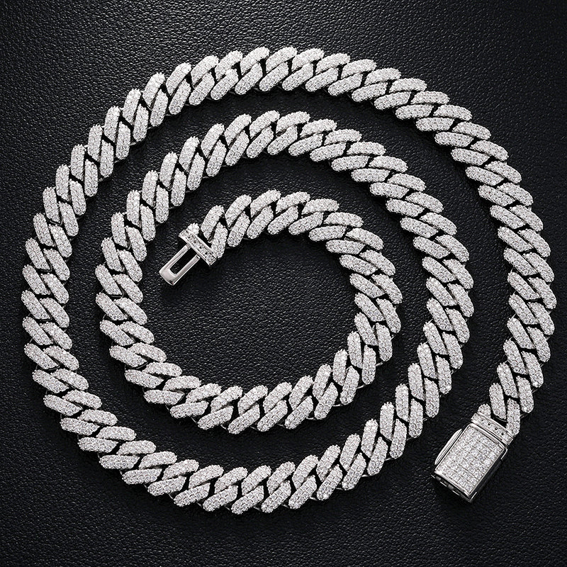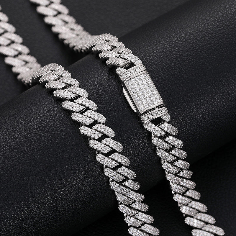 9MM MOISSANITE MIAMI CUBAN LINK CHAIN NECKLACE/BRACELET IN STERLING SILVER