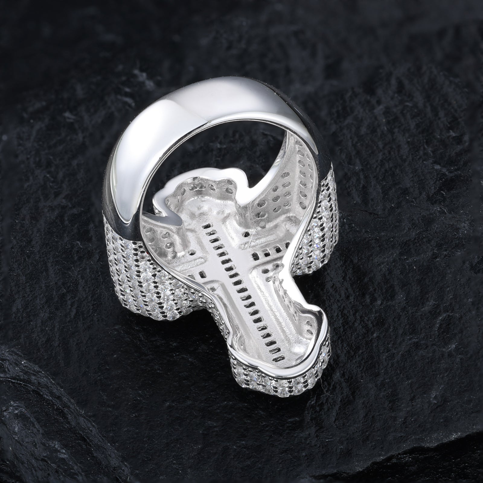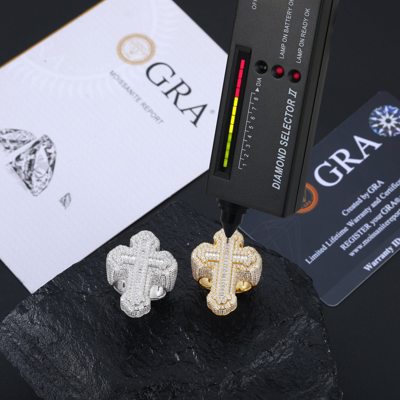 BAGUETTE CUT MOISSANITE DIAMOND IRIS CROSS RING IN STERLING SILVER