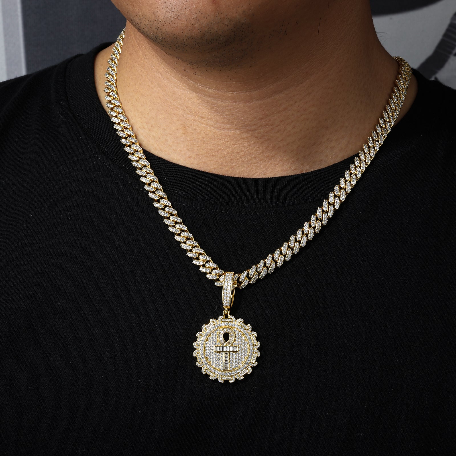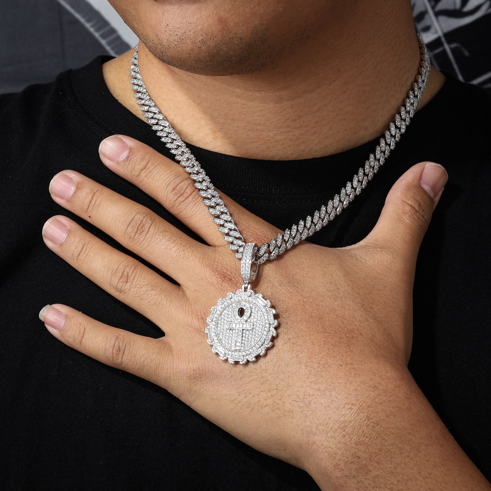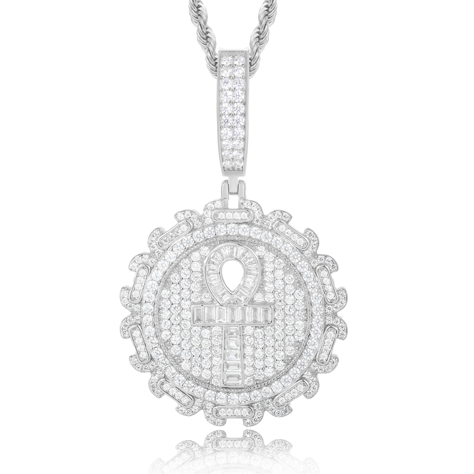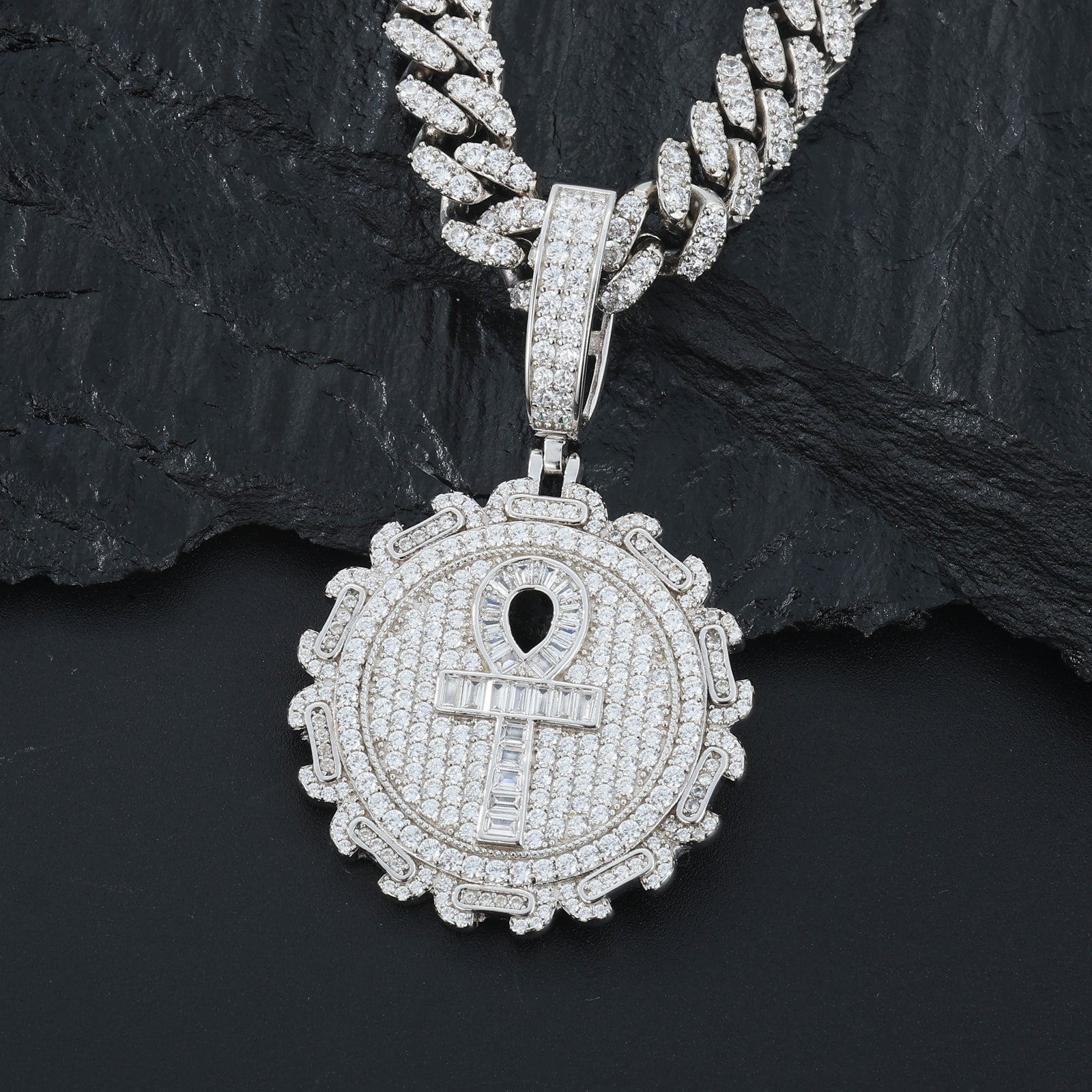 Baguette Moissanite Iced Out Ankh Cross Pendant: A symbol of life and eternity, this striking Ankh pendant is adorned with radiant baguette-cut moissanite stones for a flawless iced-out look. Crafted in sterling silver, it blends timeless symbolism with modern brilliance, making it a statement piece for any collection. ✨⛓️
