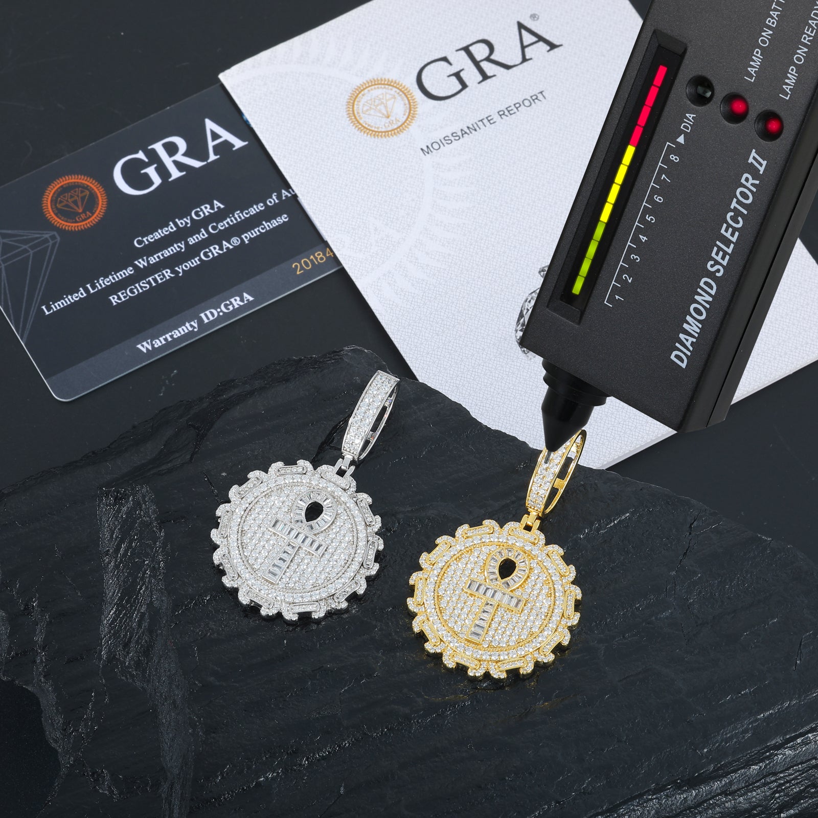 BAGUETTE MOISSANITE ANKH CROSS PENDANT