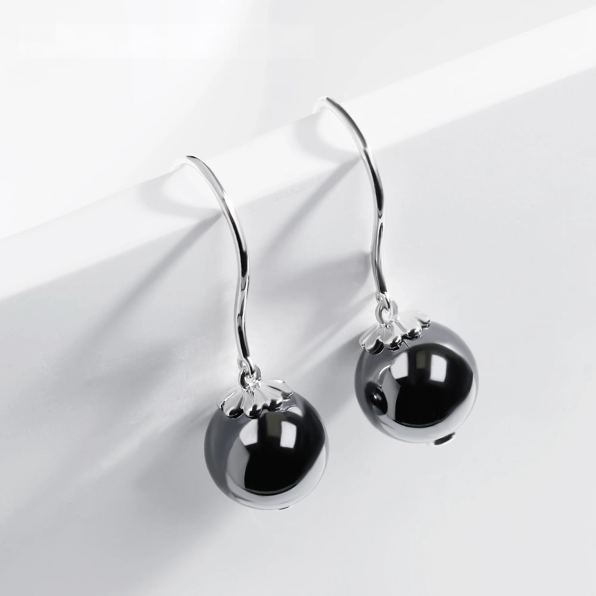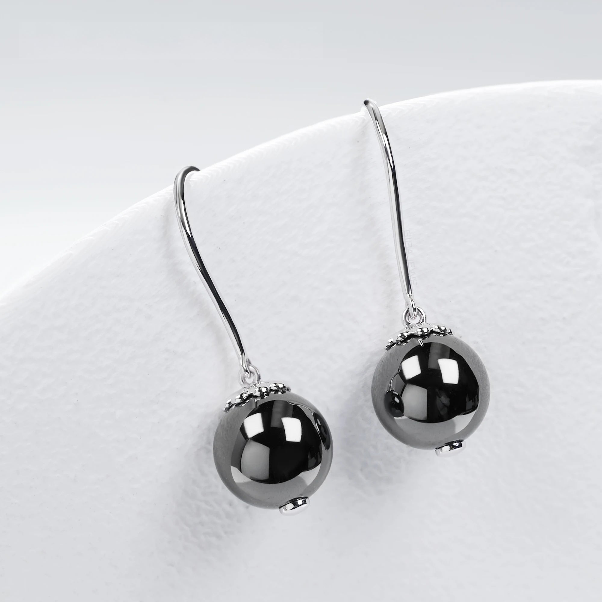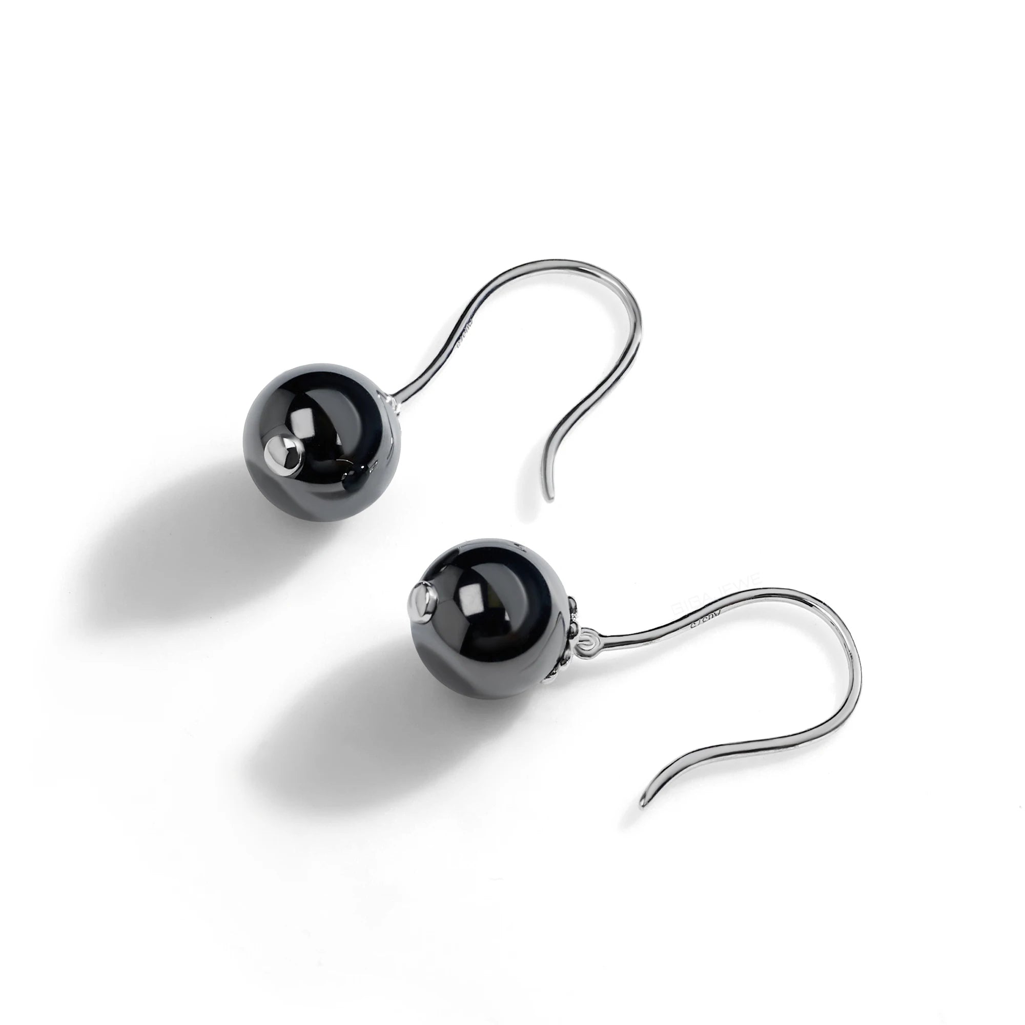 BLACK MOISSANITE BALL HOOP EARRING IN SOLID WHITE GOLD
