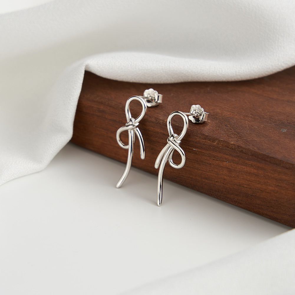 BOW TIE RIBBON STUD EARRING IN STERLING SILVER