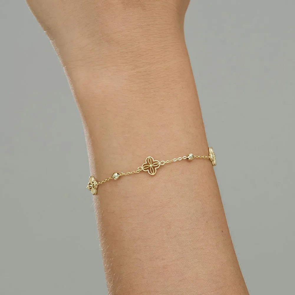 Clover Charm Chain Bracelet In Sterling Silver: Delicate, charming, and effortlessly wearable, the Clover Charm Chain Bracelet adds a subtle touch of luck to your everyday style. Crafted from high-quality sterling silver, it features a finely detailed clover charm accented by elegant bead elements along a slim chain. The adjustable length ensures a comfortable, personalized fit, making it perfect for stacking or wearing solo. A timeless piece with a hint of symbolism, designed to elevate both casual and refined looks.