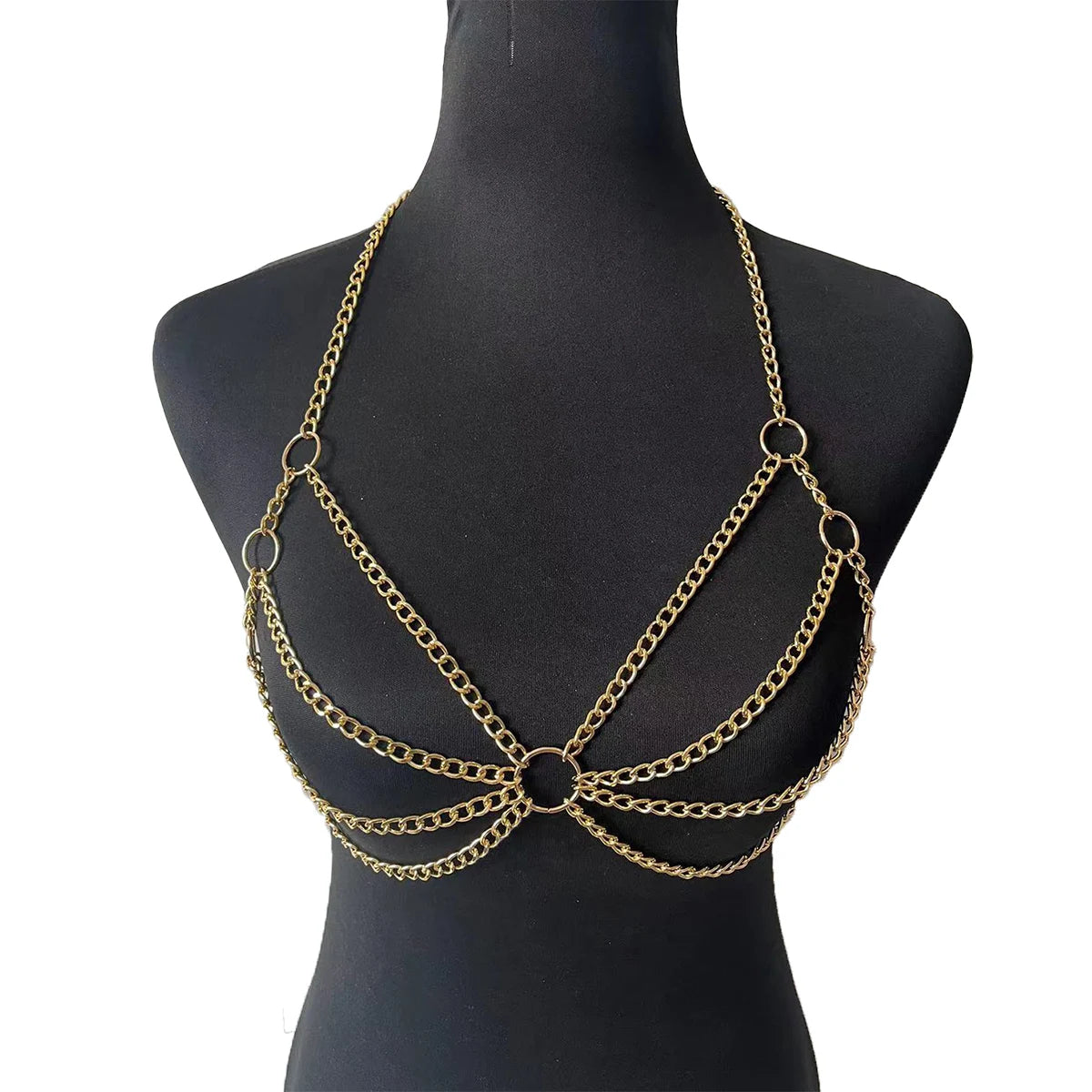 CONTOUR LINK BODY CHAIN BRALETTE: A sleek body chain bralette designed with fluid linked chains that trace and contour the natural shape of the bust. The structured yet lightweight design creates a balanced silhouette, adding subtle movement and shine without overpowering the look. Perfect for layering over swimwear, bandeau tops, or evening outfits, this piece delivers a modern, confident statement with effortless edge ✨