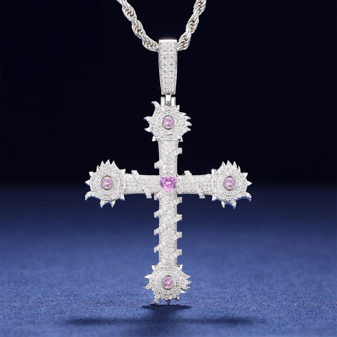 CROSS MOISSANITE THORN PINK CZ PENDANT IN STERLING SILVER