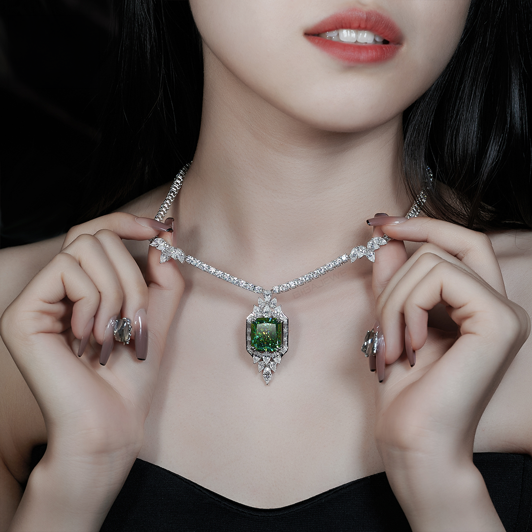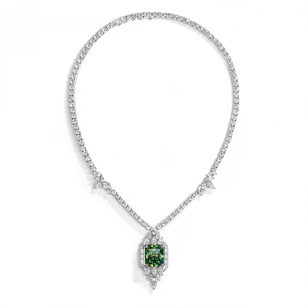 The Round Brilliant Cut Moissanite Pendant Necklace in White Gold and Sterling Silver exudes timeless elegance and brilliance. Featuring a stunning round brilliant cut moissanite, this pendant captures maximum sparkle and fire, making it the perfect statement piece. The radiant cyan hue adds a vibrant touch, while the combination of white gold and sterling silver provides a luxurious and modern finish. Ideal for special occasions or everyday sophistication, this pendant elevates any outfit with its captivating beauty and exquisite craftsmanship. 🌟💖