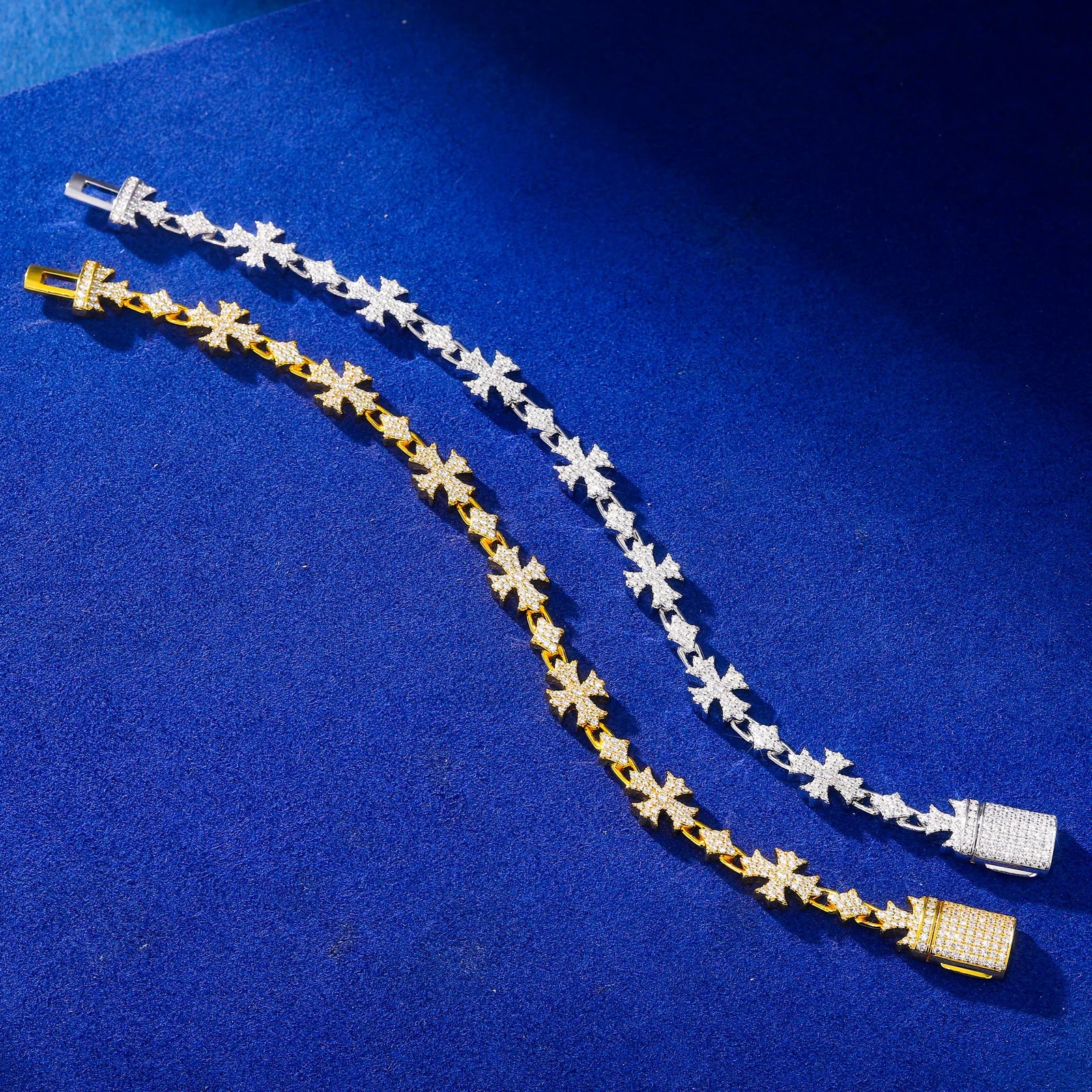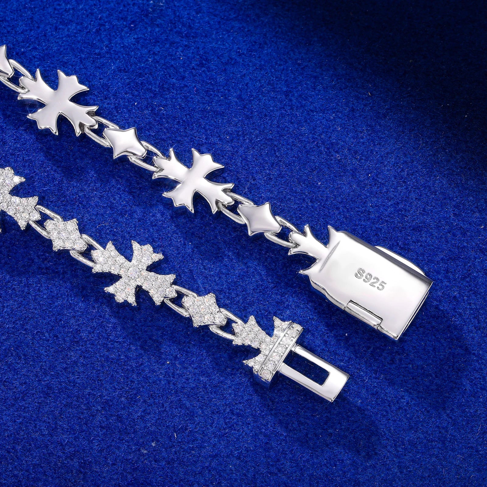 Eternal Cross Moissanite Bracelet in Sterling Silver: is a timeless expression of faith, strength, and refined elegance. Crafted from premium 925 sterling silver, this bracelet features a series of intricately designed cross motifs, each set with brilliant moissanite diamonds that deliver exceptional fire and clarity. The polished silver finish ensures long-lasting shine, while the secure clasp and balanced link design provide everyday comfort and durability. Perfect for daily wear, special occasions, or meaningful gifting, this moissanite cross bracelet blends symbolic design with modern luxury craftsmanship, making it a standout addition to any fine jewelry collection.