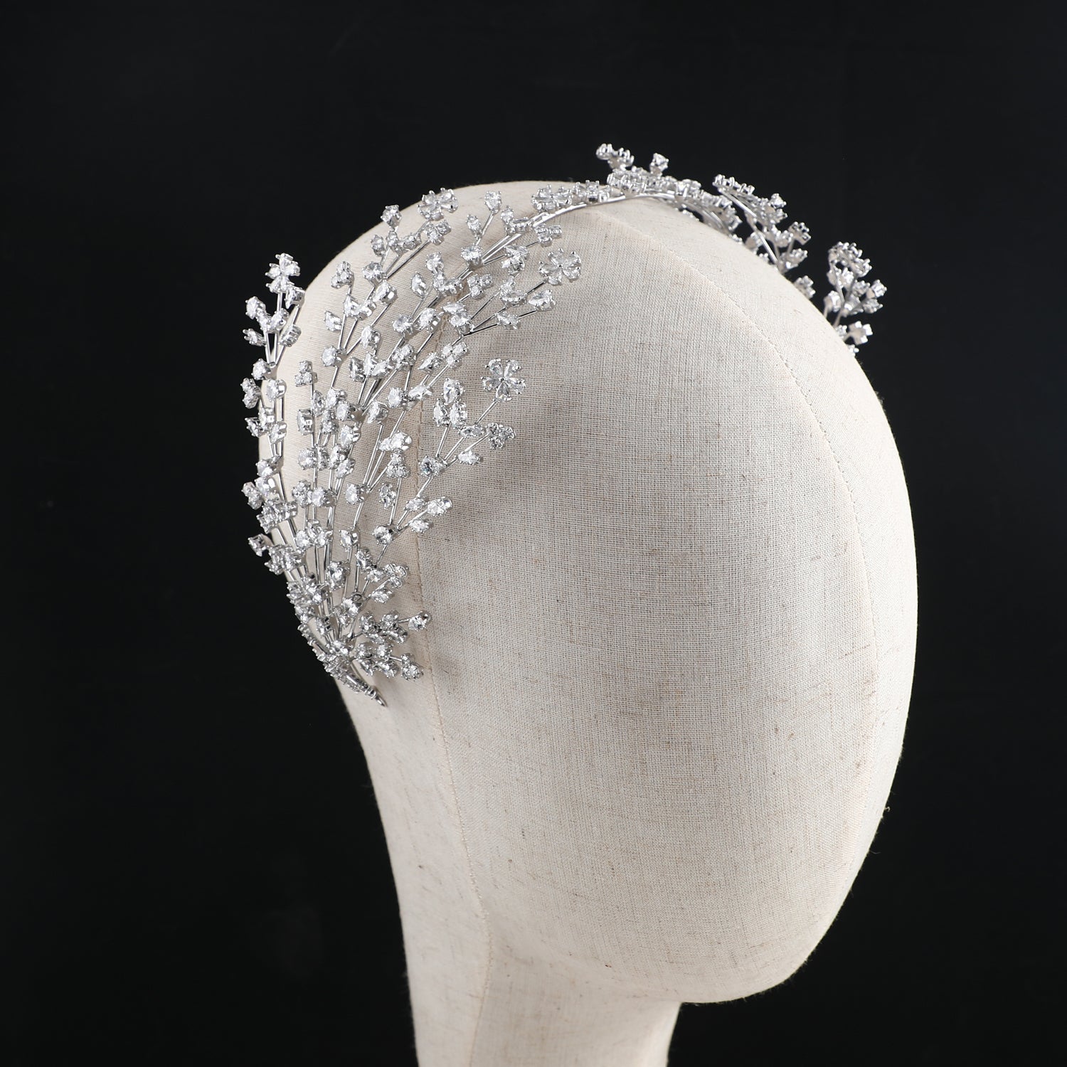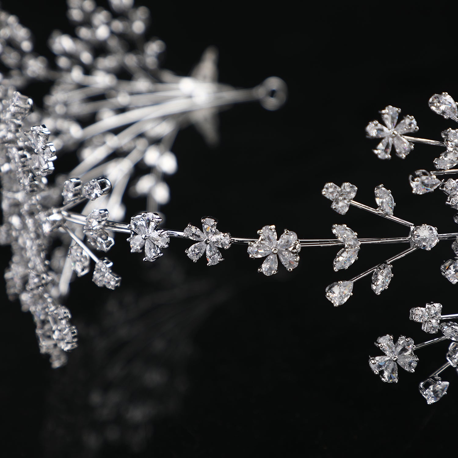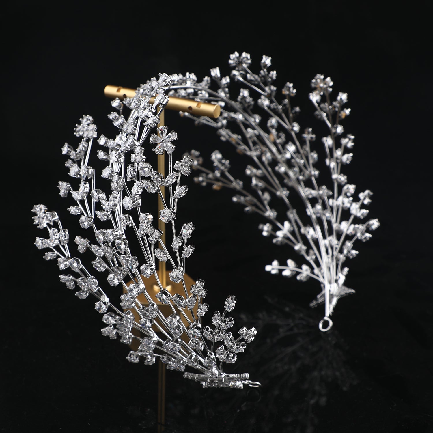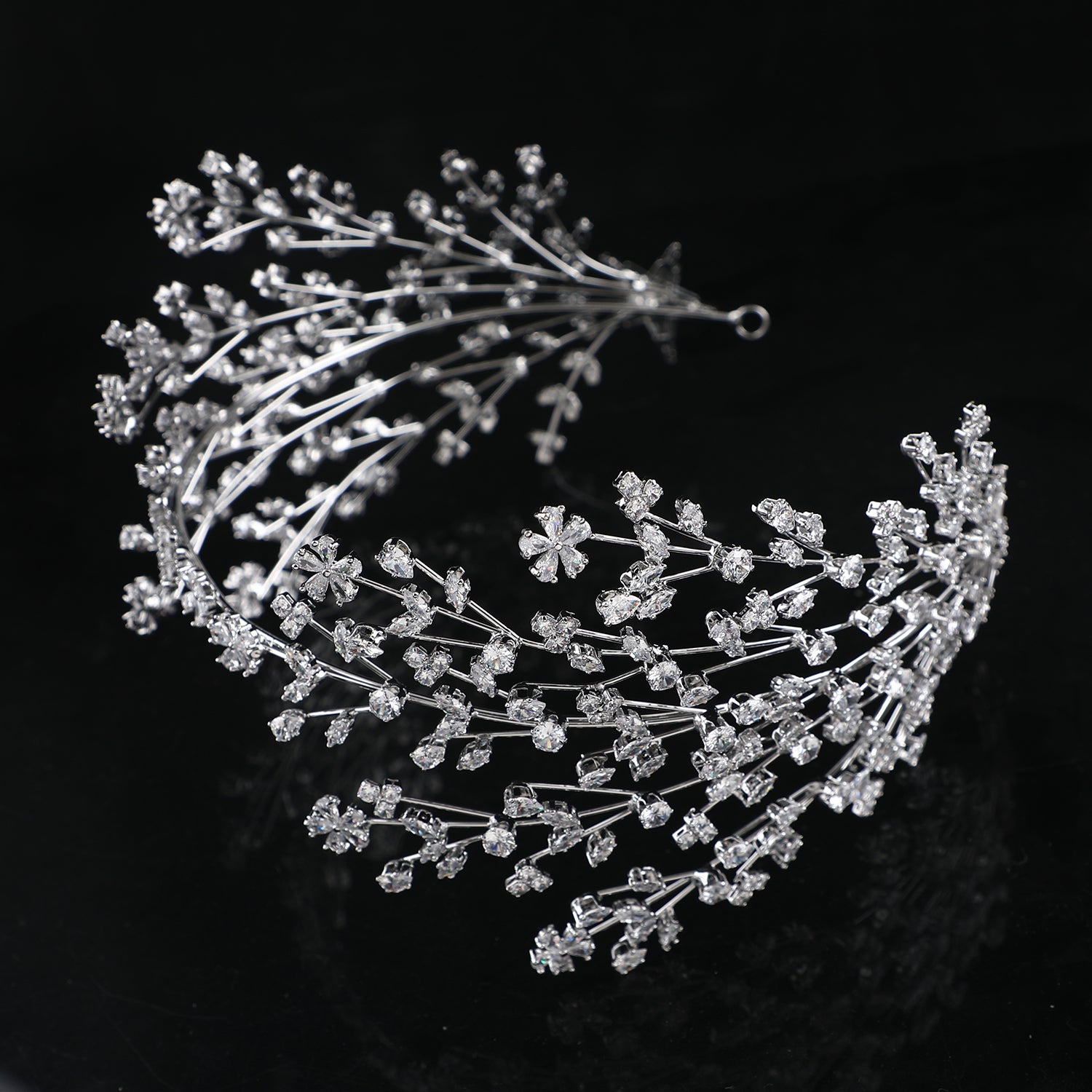 The Floral Bridal Beauty Tiara is a stunning headpiece that embodies elegance and nature's grace. Featuring intricate designs that mimic the delicate branches of a tree, this tiara is adorned with sparkling gemstones that catch the light beautifully. Perfect for weddings, pageants, or special occasions, it adds a touch of royalty to any look. Crafted with attention to detail, this tiara is not just an accessory; it's a statement piece that enhances your beauty and showcases your unique style. Wear it to feel like true royalty on your special day. 👑✨