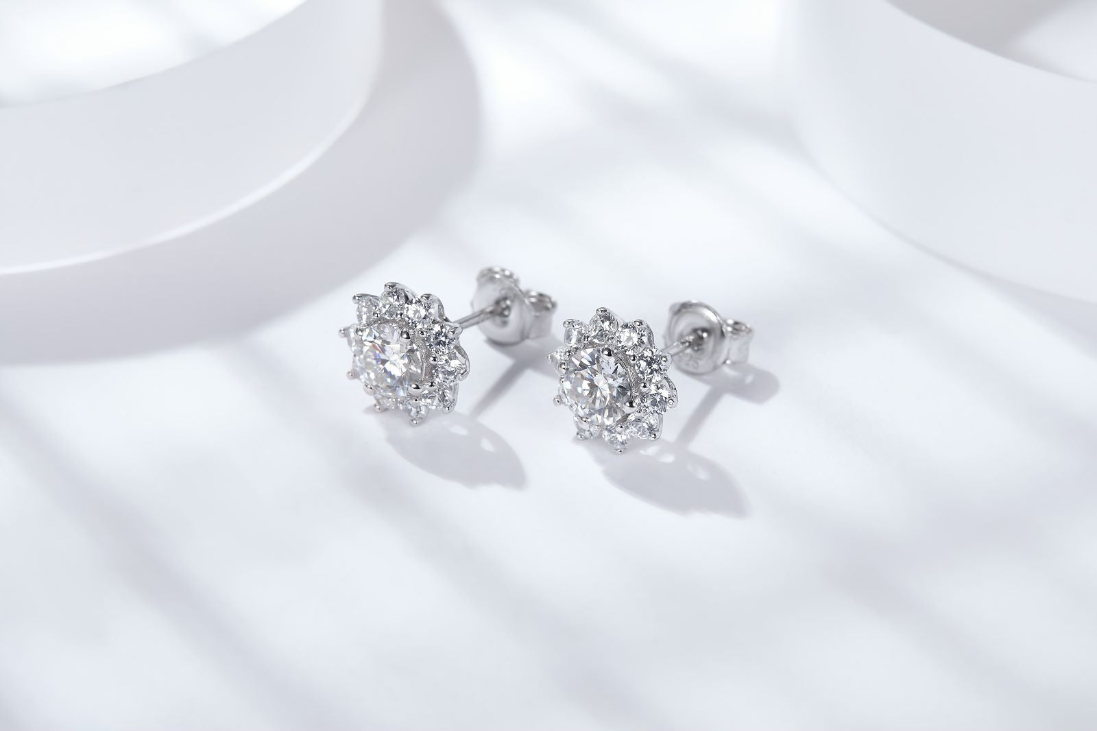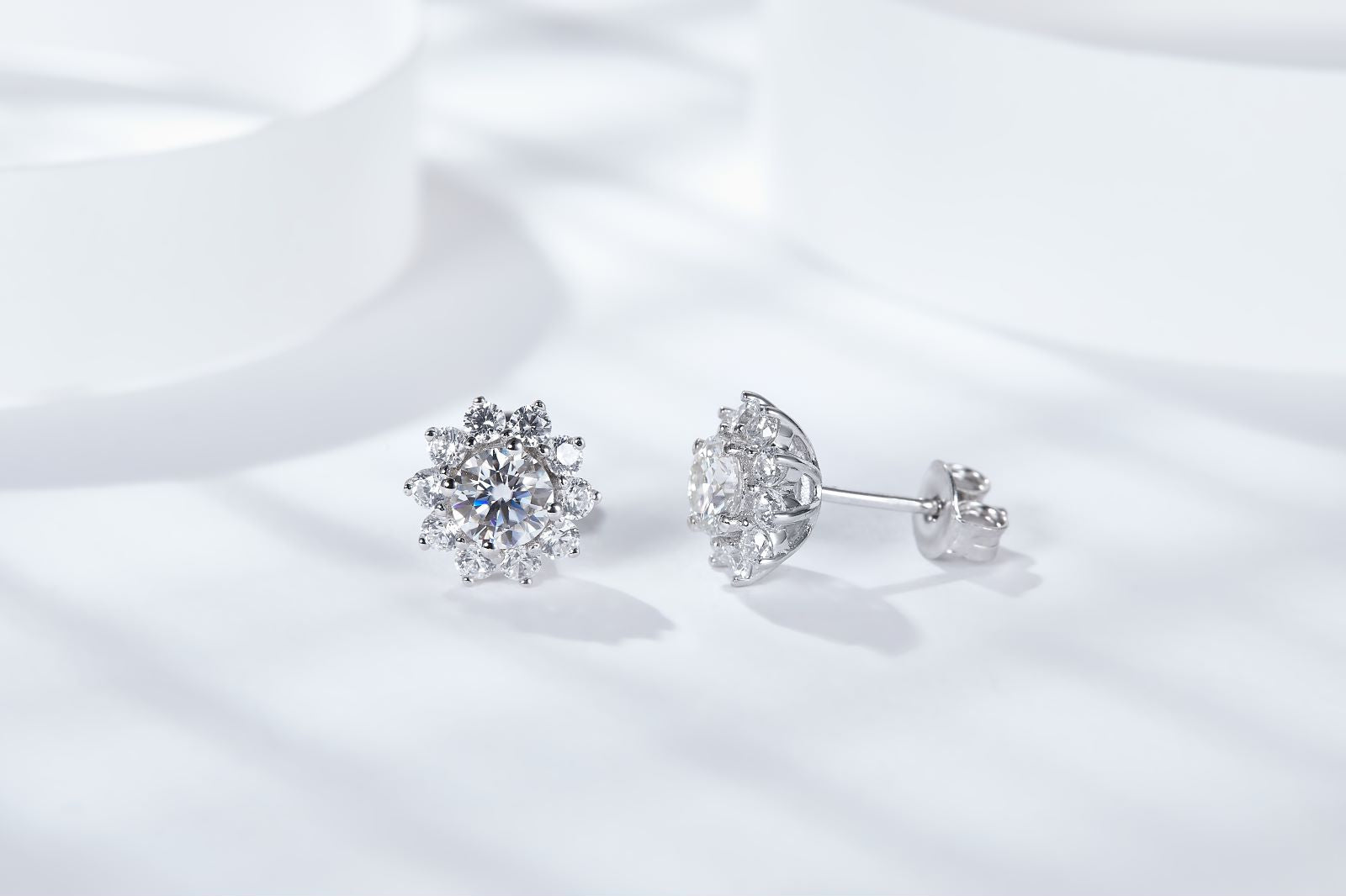 FLOWER 0.5CT MOISSANITE DIAMOND STUD EARRINGS IN STERLING SILVER