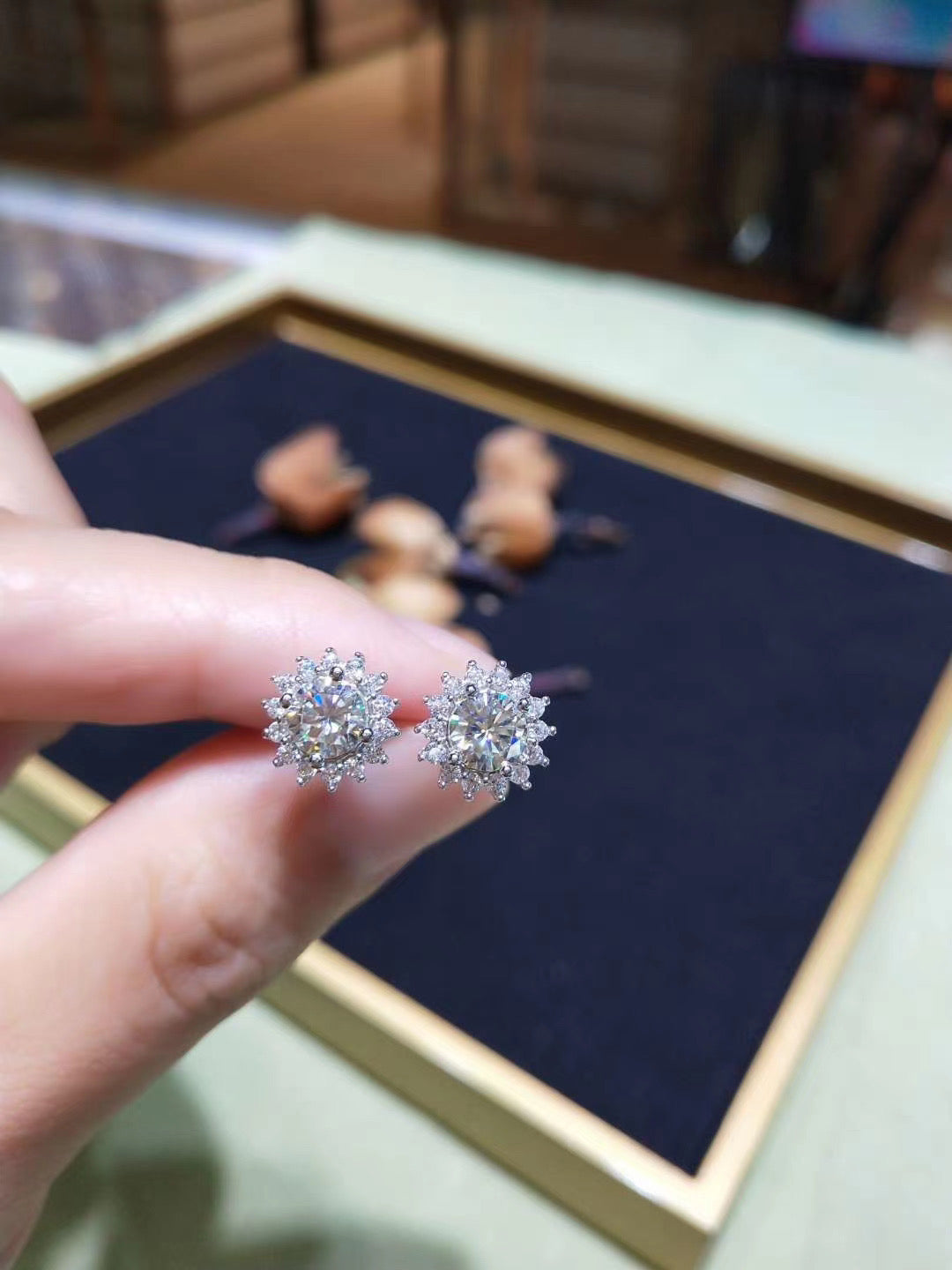 Flower 0.5CT Moissanite Diamond Stud Earrings in Sterling Silver feature round brilliant cut moissanite diamonds that are 5mm in size. These exquisite earrings showcase a delicate flower design, adding a touch of elegance and charm to any ensemble. Perfect for any occasion, they combine timeless beauty with modern sophistication. 💙
