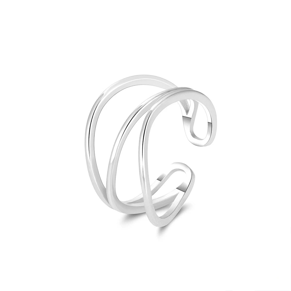 FLOWLINE WRAP OPEN RING IN STERLING SILVER: Fluid, modern, and effortlessly cool, the Flowline Wrap Open Ring is designed with smooth, overlapping bands that curve naturally around the finger. Crafted from high-quality sterling silver with a high-polish finish, its sculptural silhouette creates the illusion of movement and depth from every angle. The open-ended design allows for a comfortable, adjustable fit, making it perfect for everyday wear or layering with other rings. Minimal yet expressive, this piece adds a contemporary edge to any look without trying too hard.