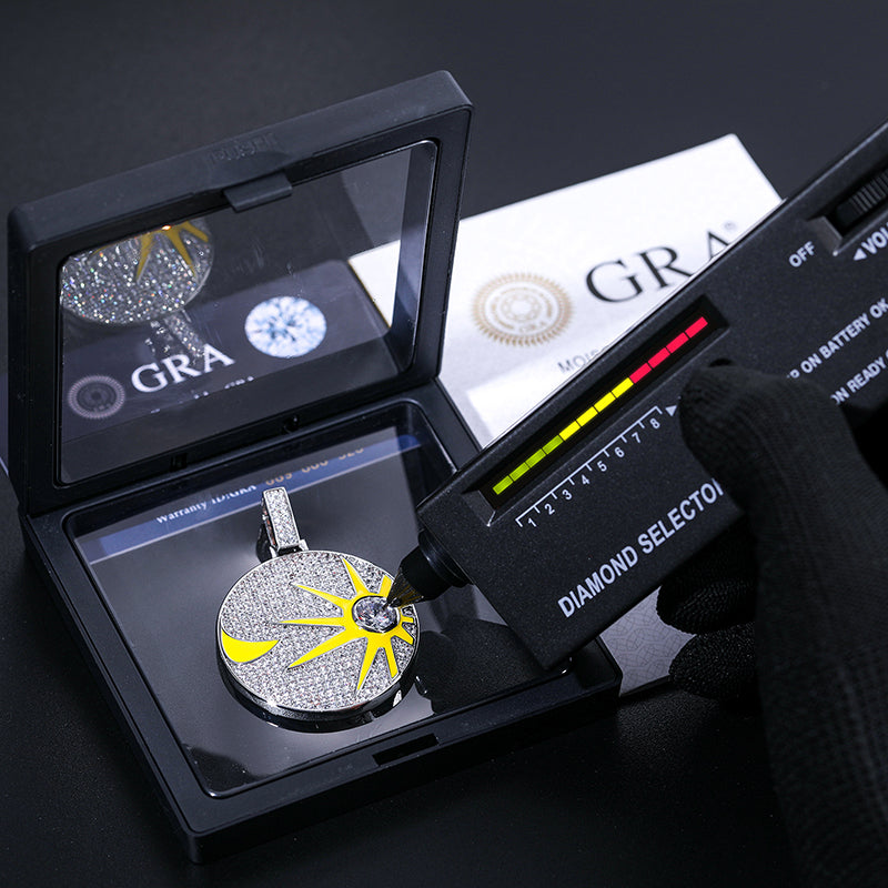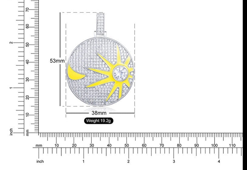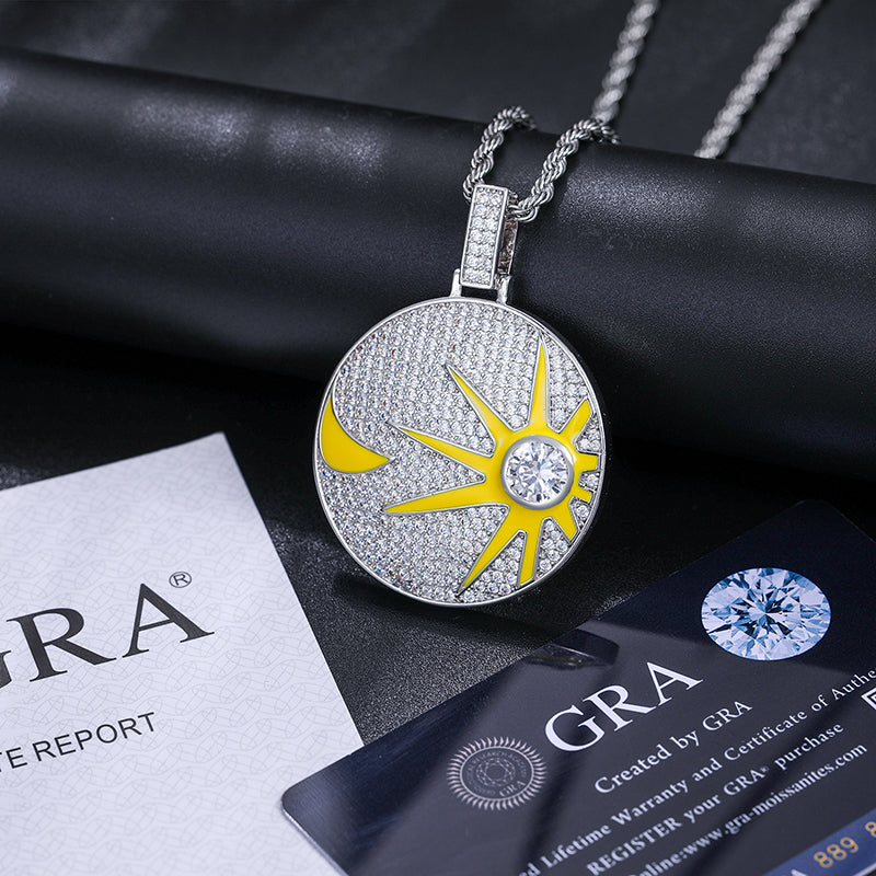 MOISSANITE GLOW IN THE DARK SUN AND MOON COIN PENDANT IN STERLING SILVER