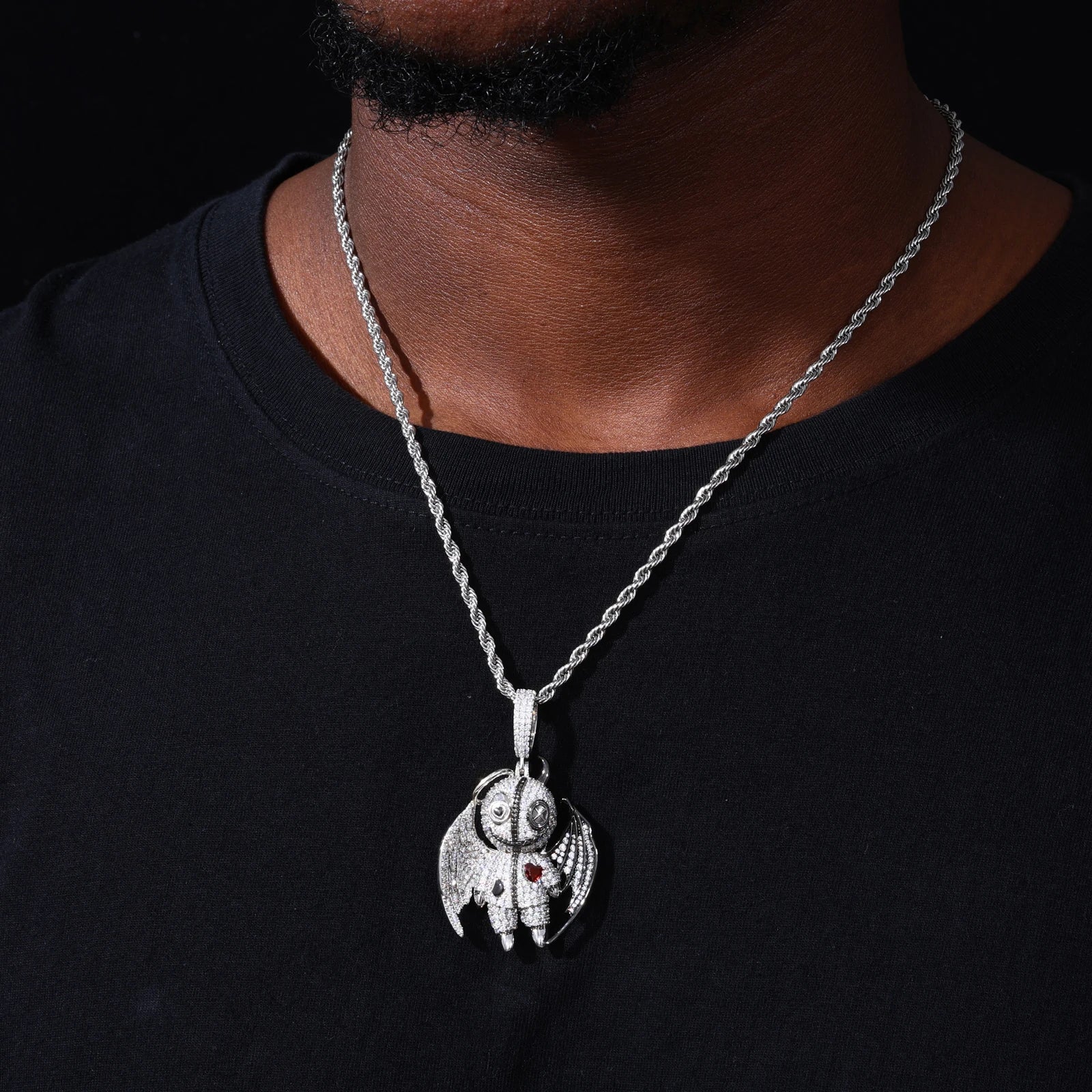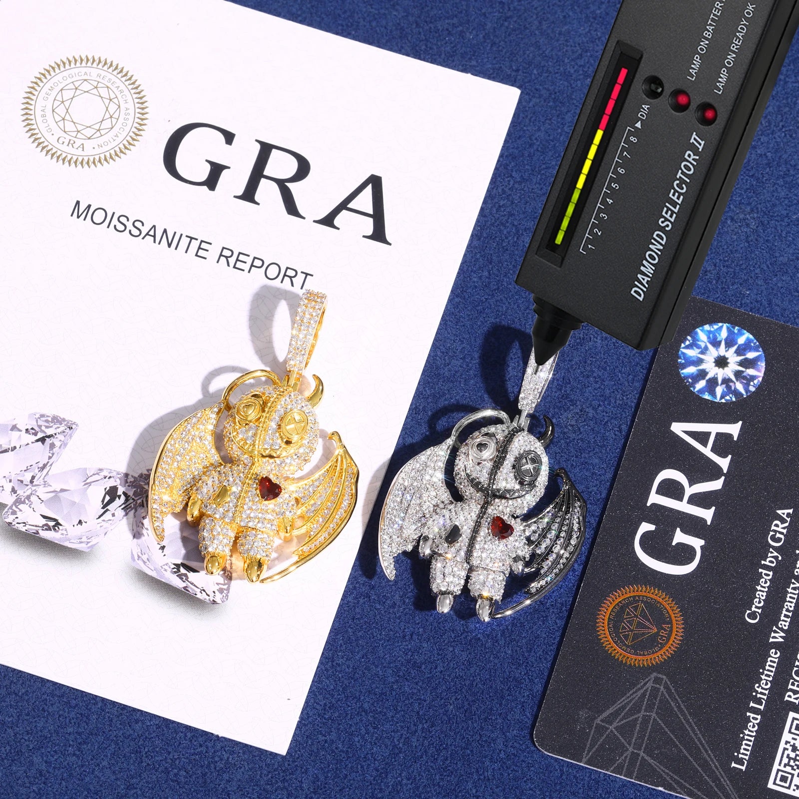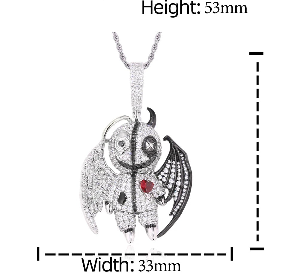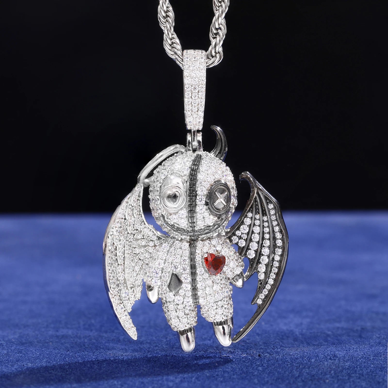 HEAVEN & HELL MOISSANITE ANGEL DEVIL PENDANT IN STERLING SILVER
