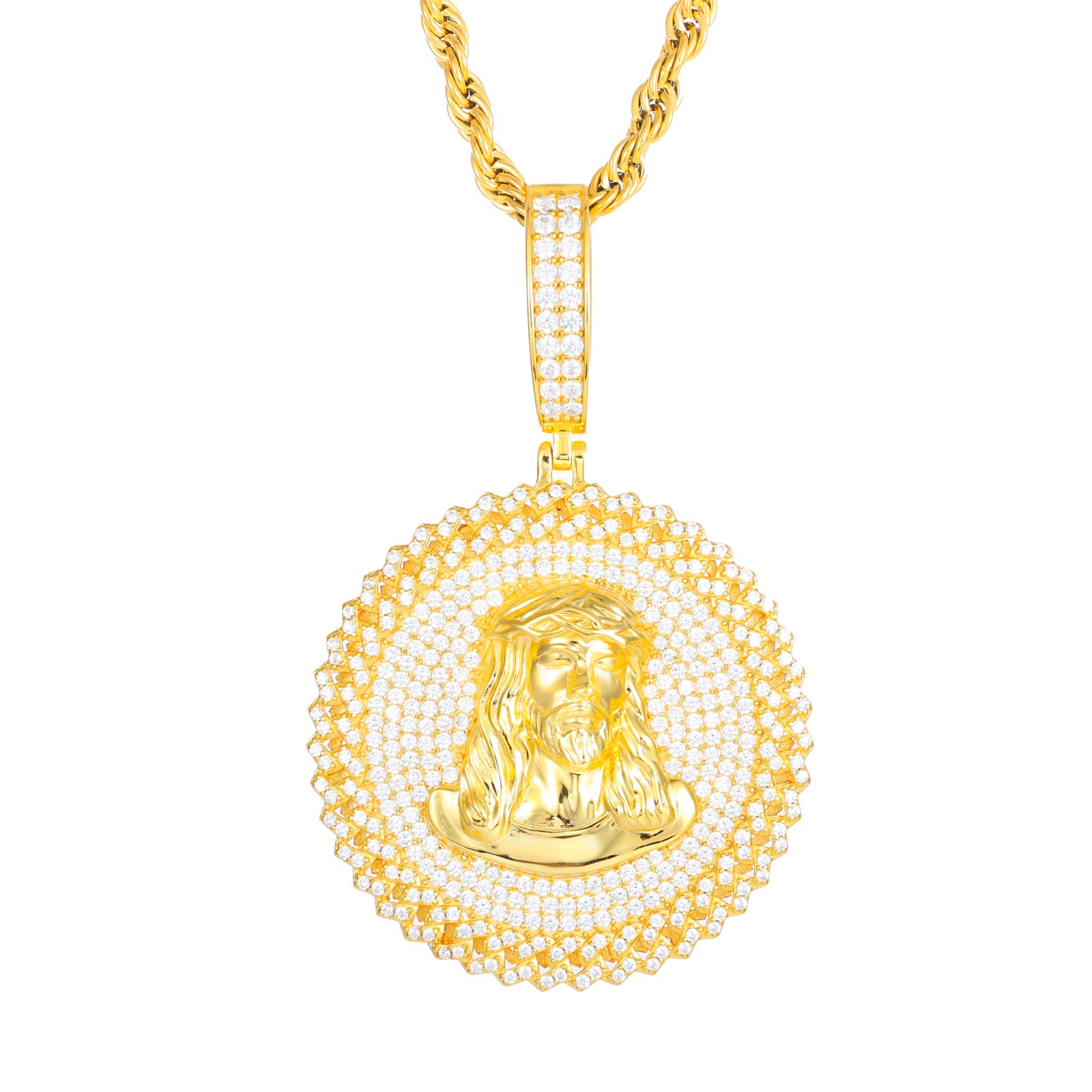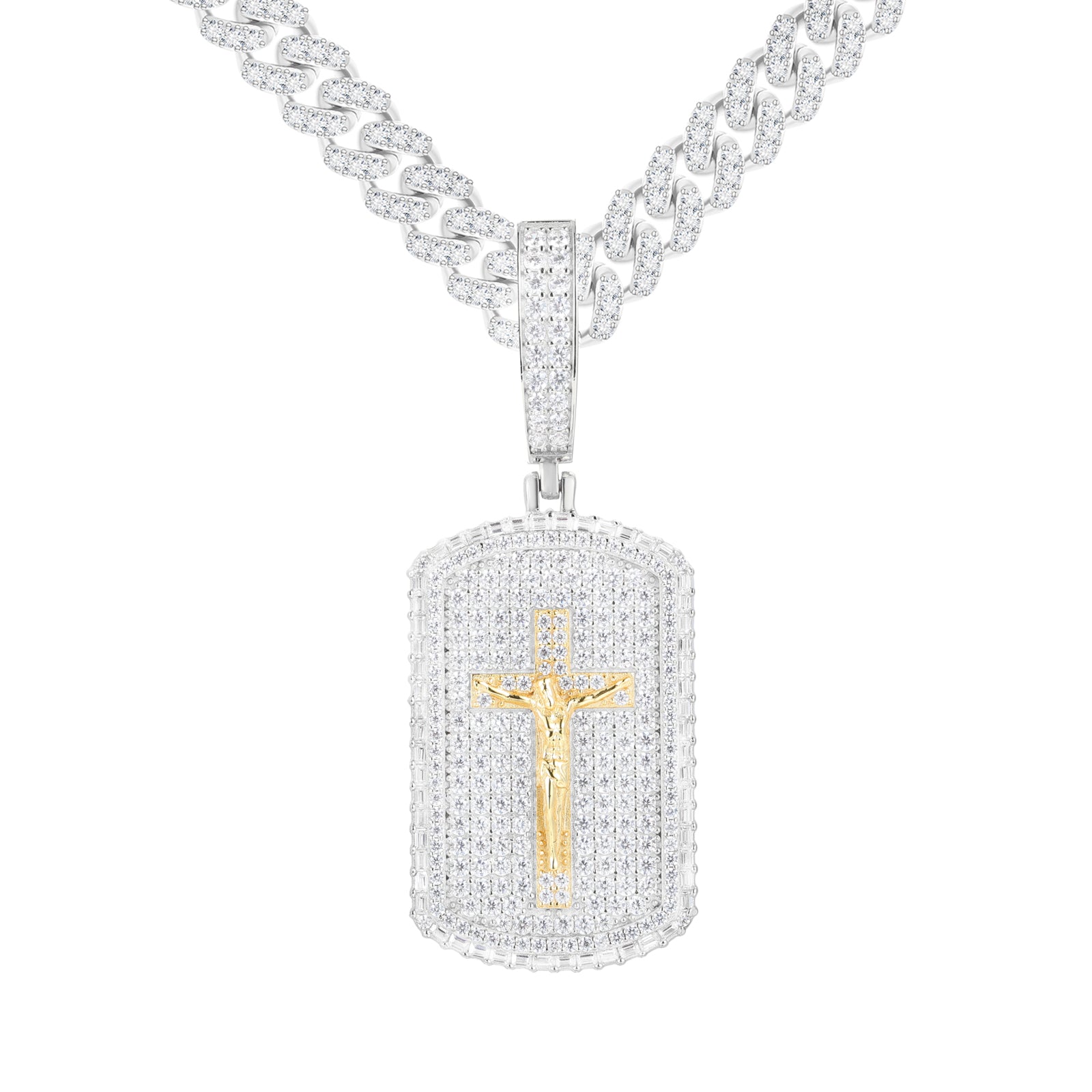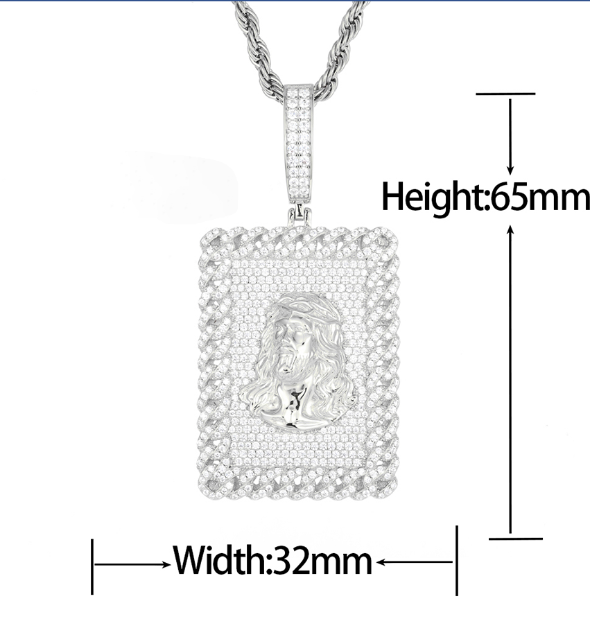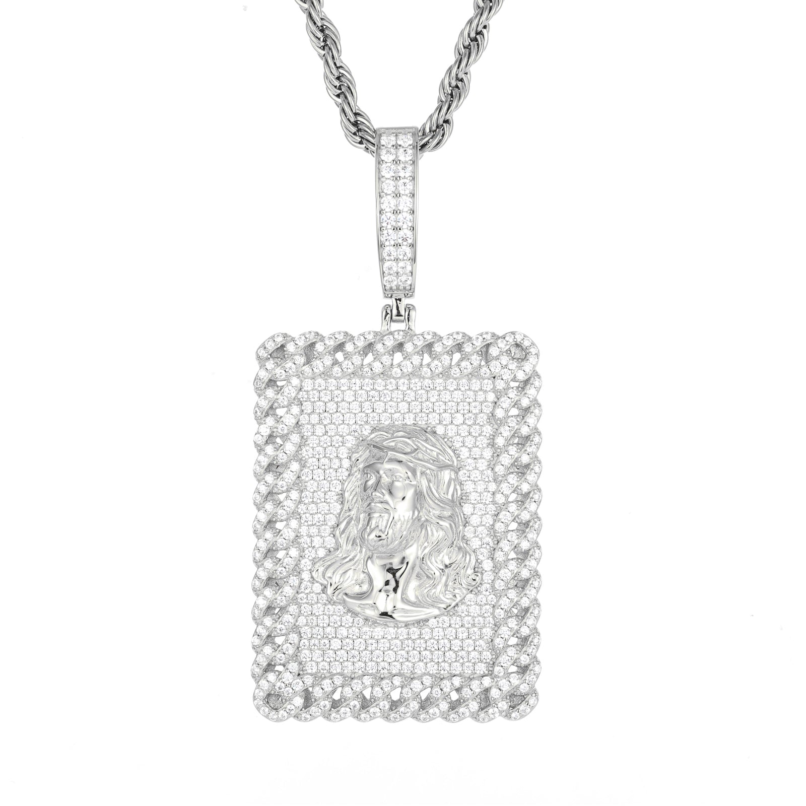 ICED OUT MOISSANITE JESUS TAG PENDANT IN STERLING SILVER