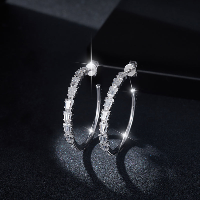 IE00101 Moissanite Hoop Earrings in Sterling Silver are a stunning addition to any jewelry collection. These elegant hoops feature brilliant moissanite stones set in high-quality sterling silver, offering a radiant sparkle and timeless design. With anti-tarnish properties, they maintain their shine and beauty, perfect for everyday wear or special occasions. 💙