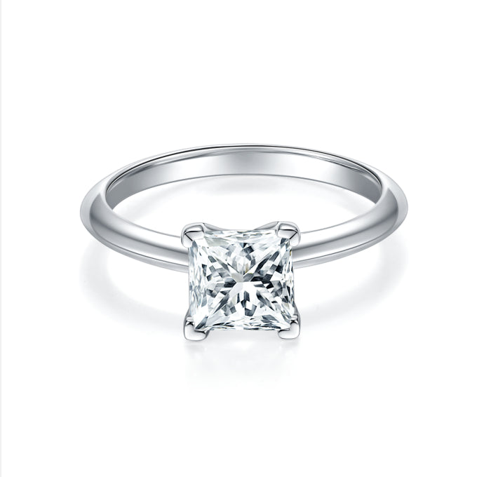 IE00126 2CT MOISSANITE DIAMOND PRINCESS CUT RING IN STERLING SILVER