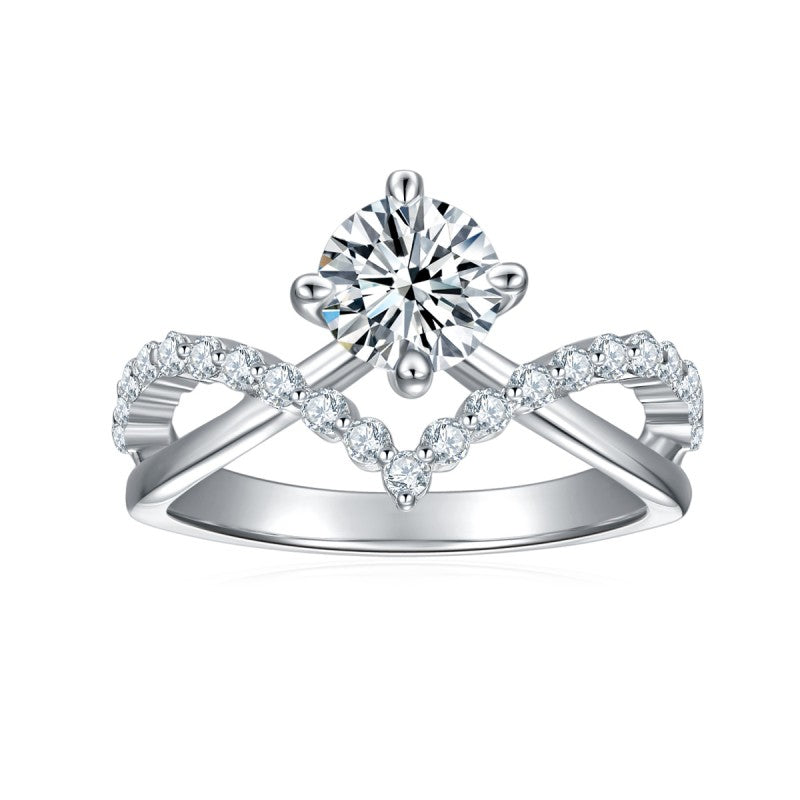 IE00215 ROUND CUT MOISSANITE ENGANGEMENT RING IN STERLING SILVER