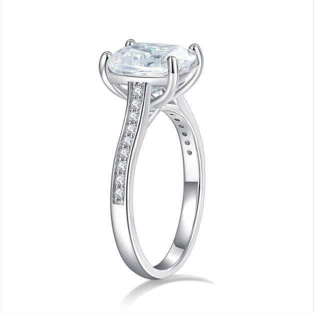 IE00235 CUSHION CUT 9X7MM MOISSANITE DIAMOND RING IN STERLING SILVER