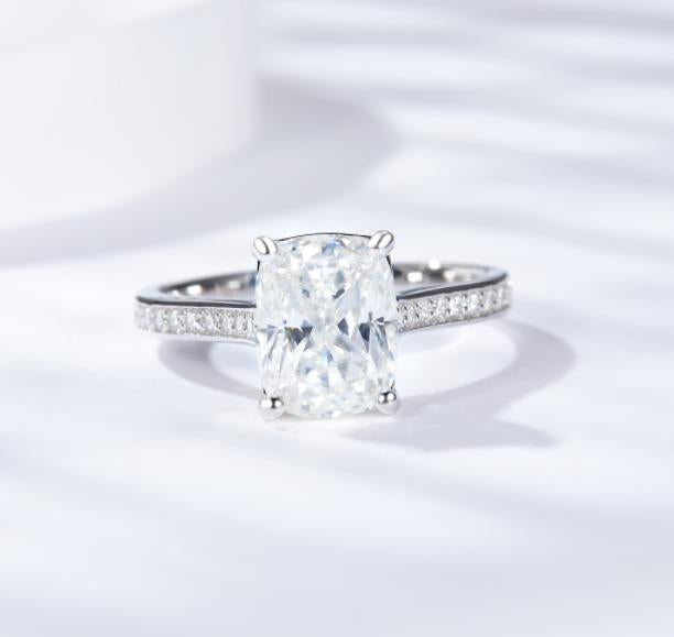 Introducing the IE00235 Cushion Cut 9x7mm Moissanite Diamond Ring in Sterling Silver. Crafted to perfection, this ring boasts a stunning cushion-cut moissanite diamond, accentuated by a sterling silver band. With its timeless elegance and exquisite craftsmanship, it's the perfect choice for those seeking sophistication and style in their jewelry collection. 💍💎