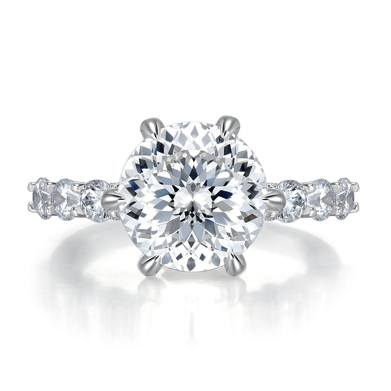 Introducing the IE00238 3CT Round Cut Moissanite Ring in Sterling Silver. This exquisite ring features a brilliant 3-carat round cut moissanite stone, beautifully set in polished sterling silver. Perfect for those who appreciate timeless elegance and exceptional sparkle, this ring makes a stunning statement of sophistication and style. Ideal for engagements, anniversaries, or special occasions, it combines modern craftsmanship with classic beauty. Elevate your jewelry collection with this dazzling and refined accessory. 💍💎
