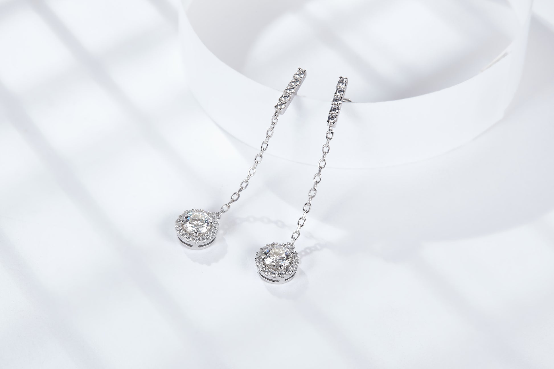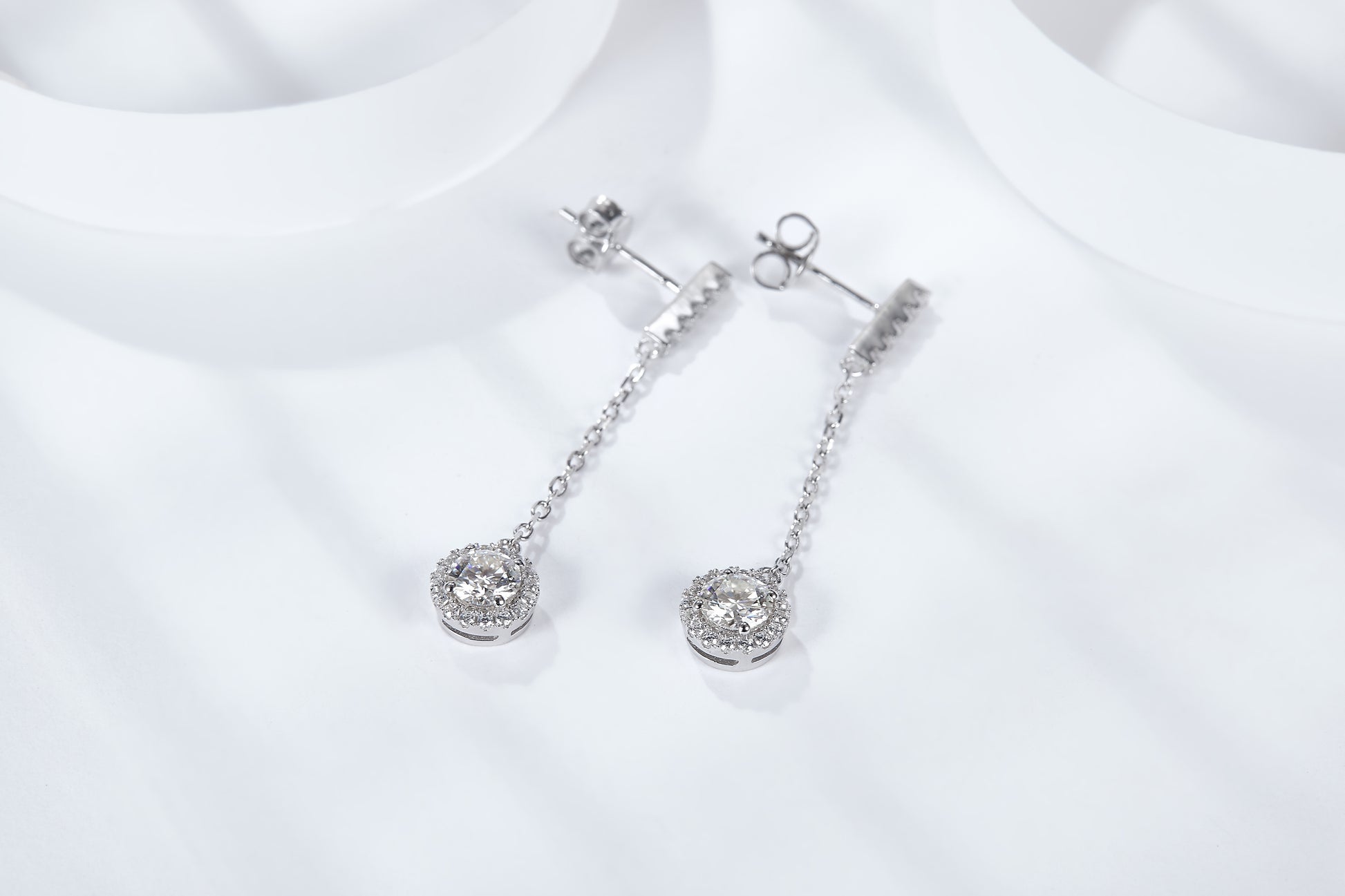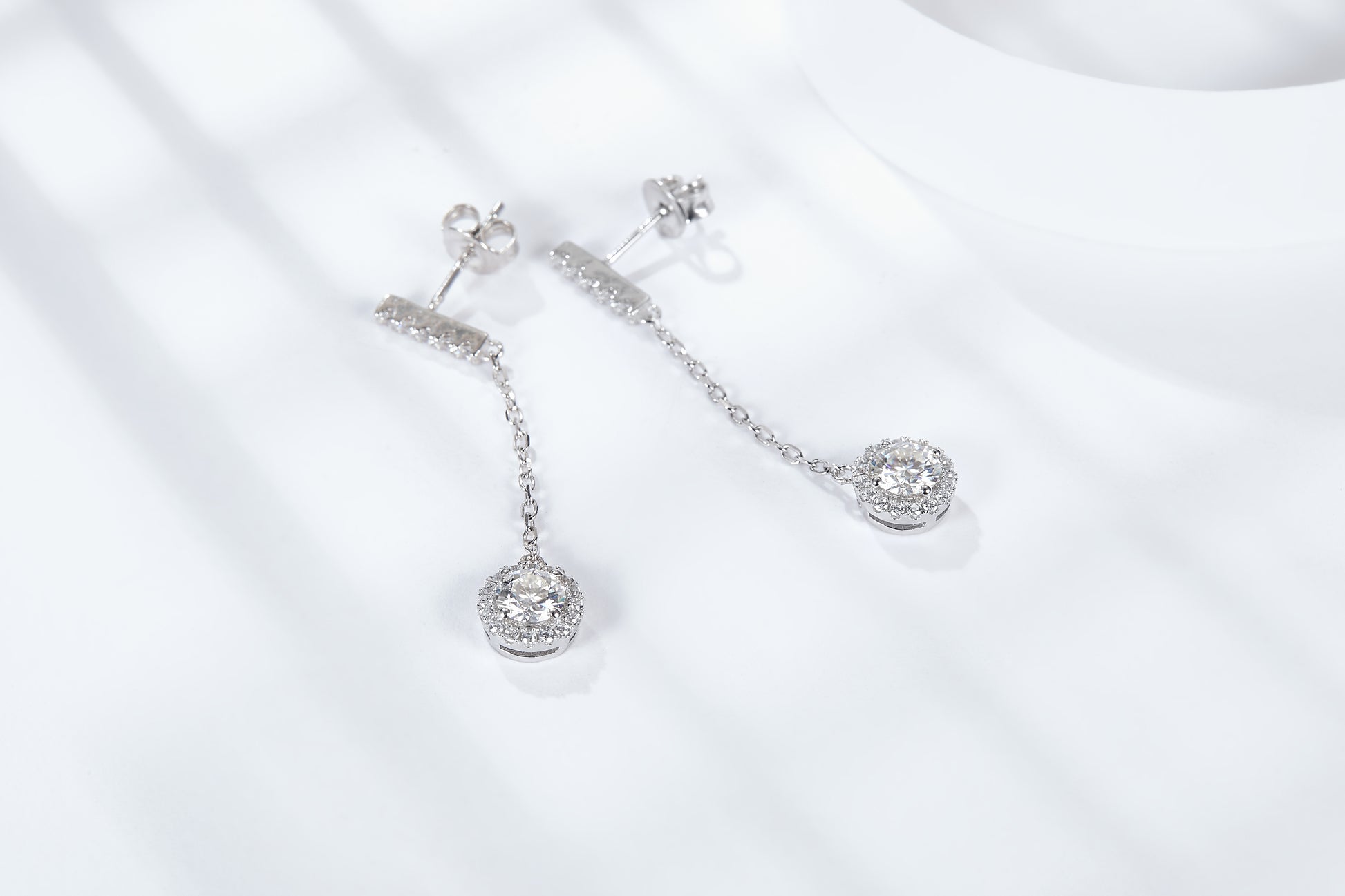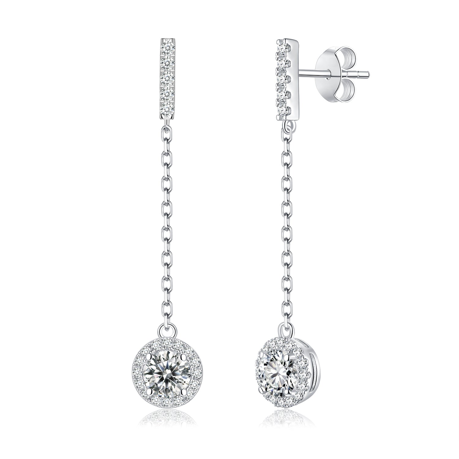 IE0026 5MM MOISSANITE ROUND DANGLE DROP EARRINGS IN STERLING SILVER