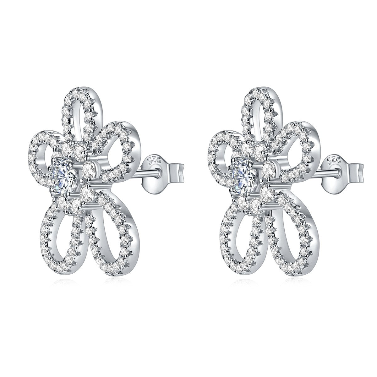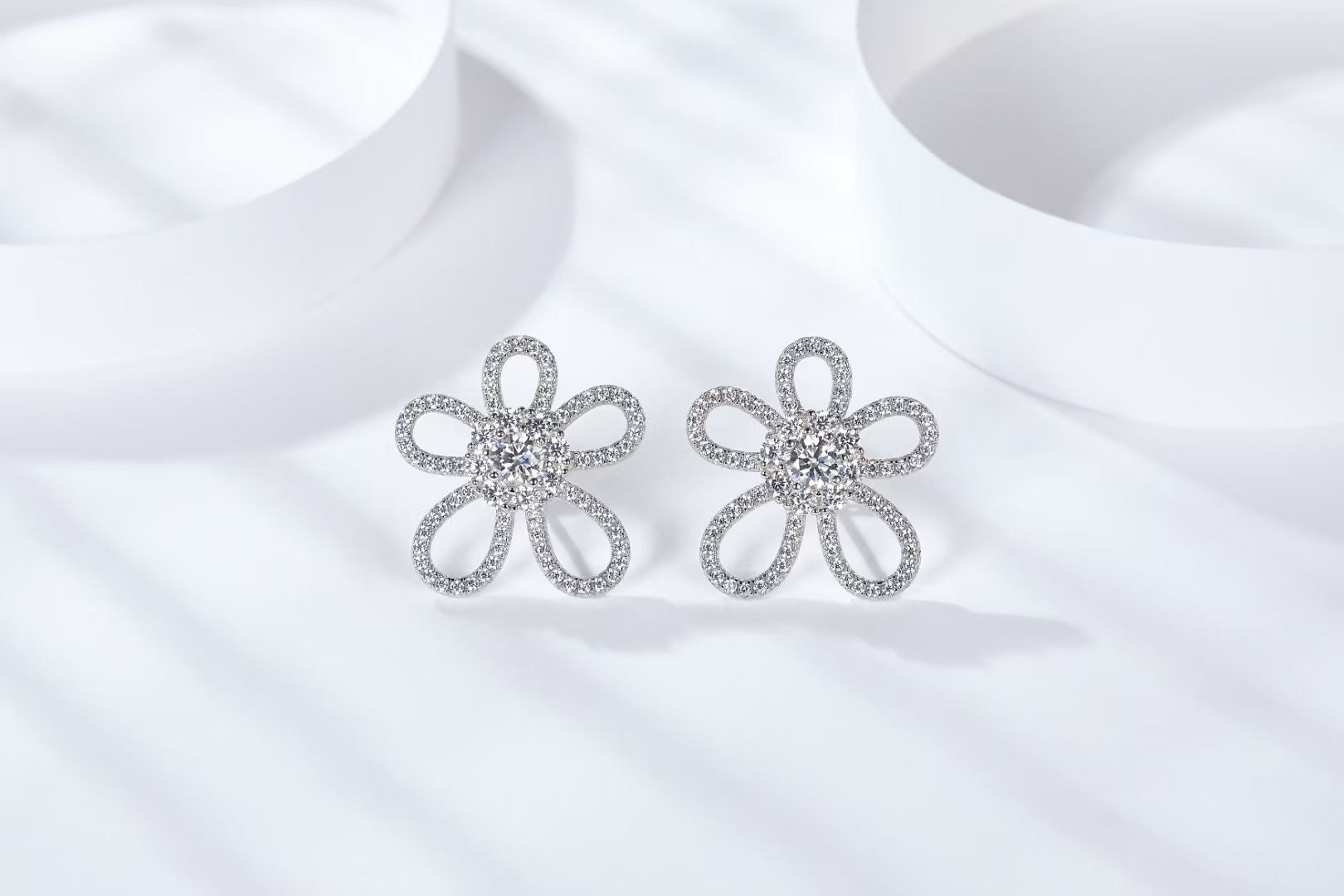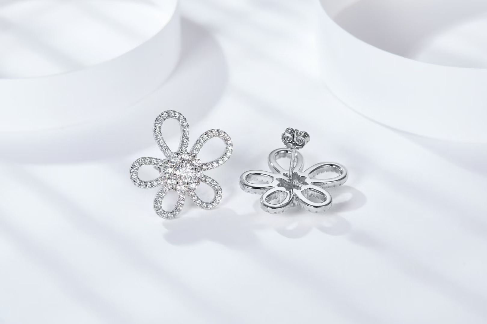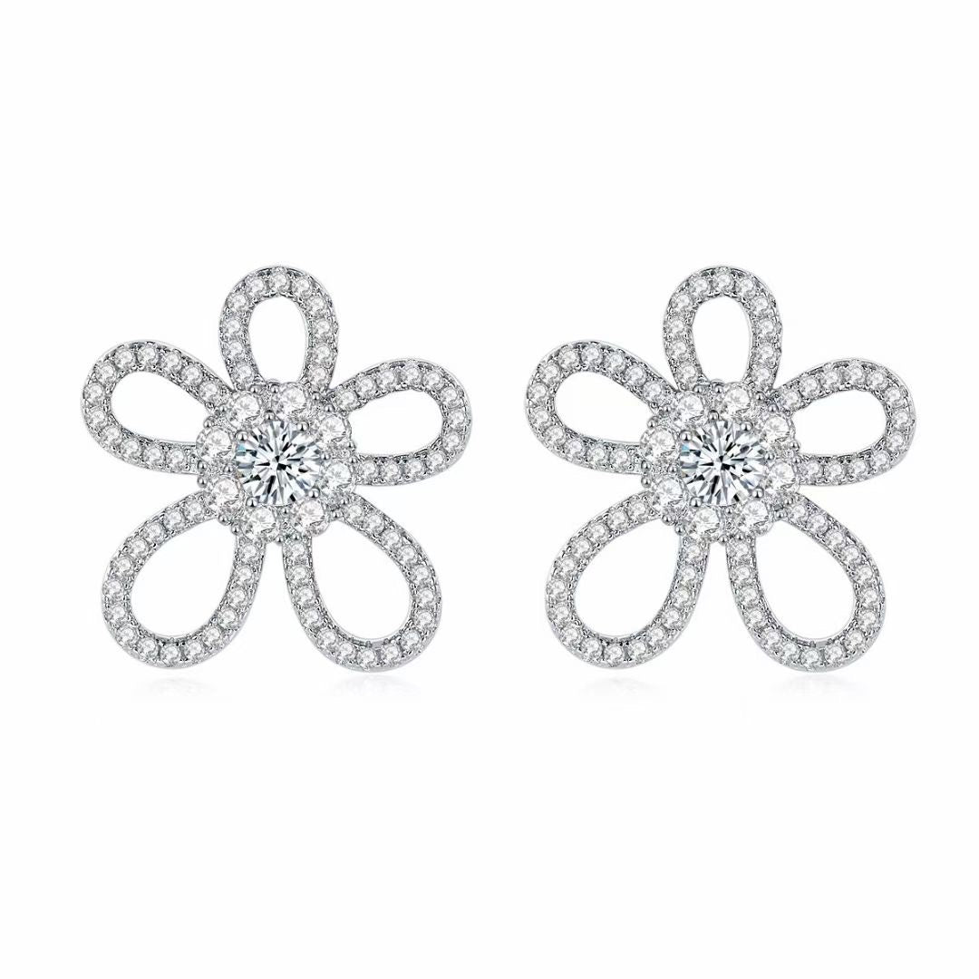 IE1030 MOISSANITE DIAMOND FLOWER STUD EARRINGS IN STERLING SILVER